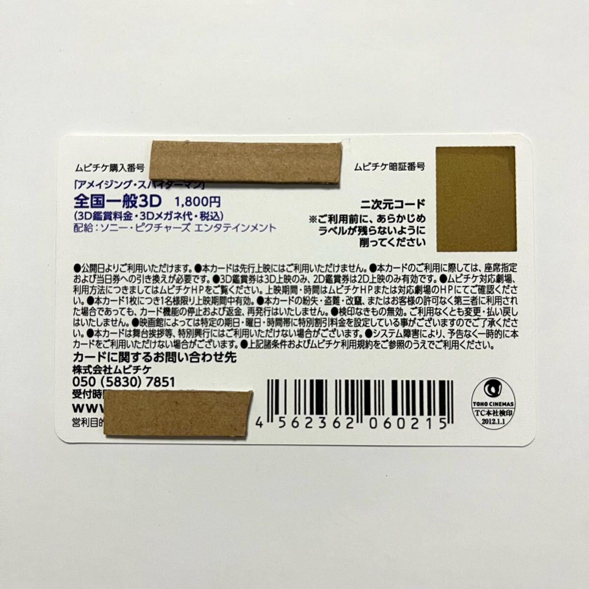2012年 ムビチケ アメイジング・スパイダーマン 第一作目 使用済 映画 洋画 チケット 半券 前売り カード 未削り アベンジャーズ 收藏