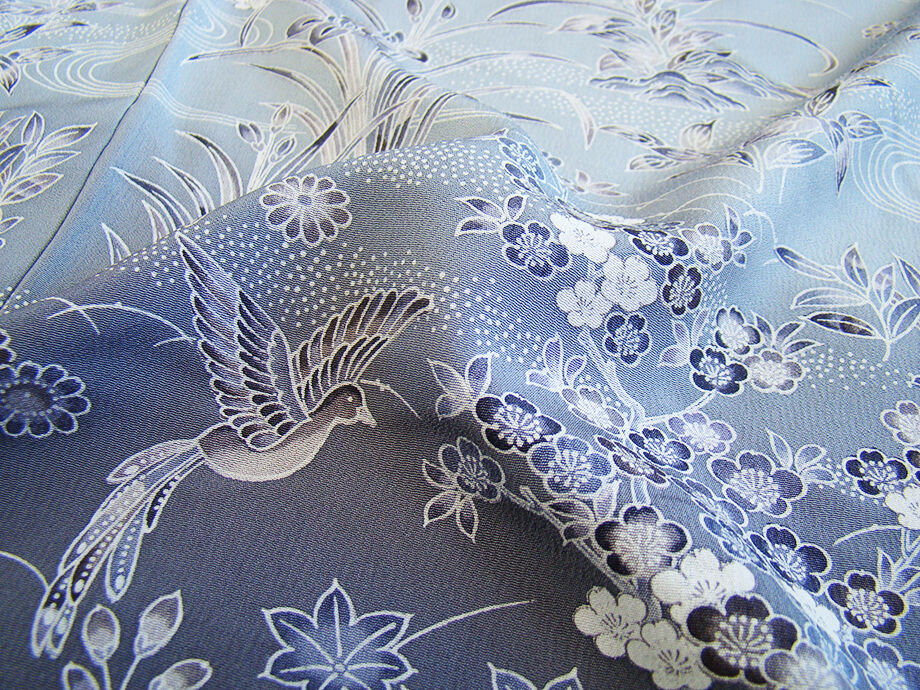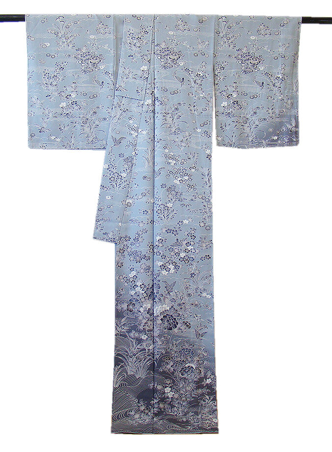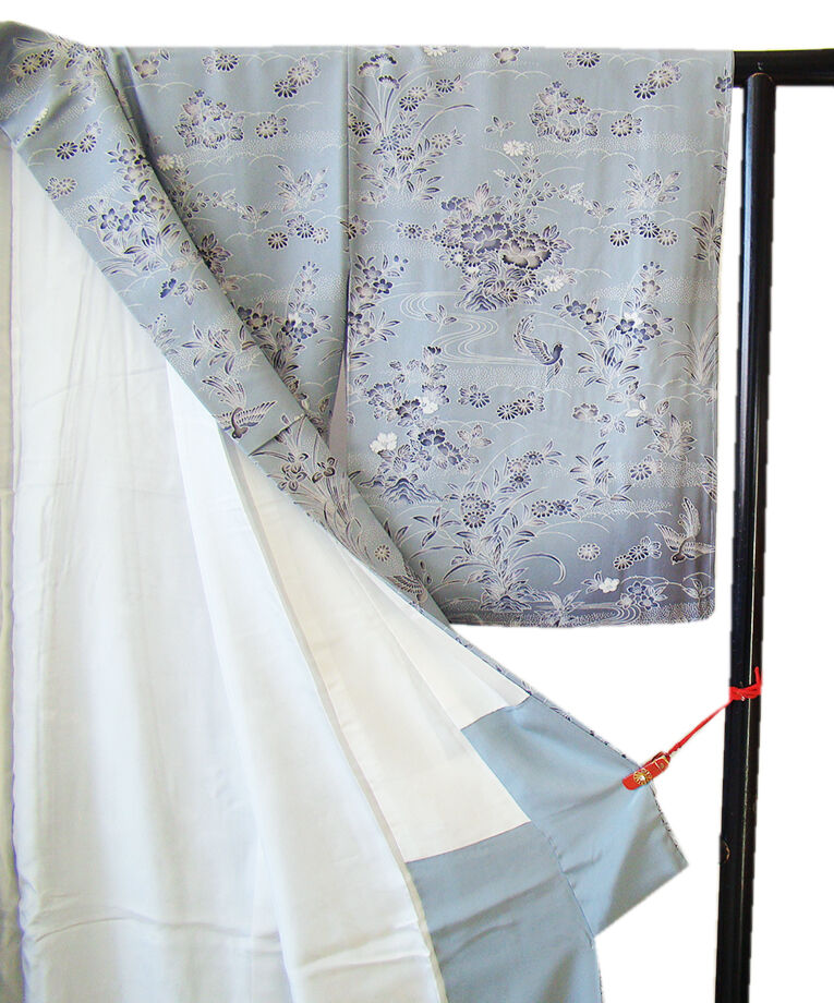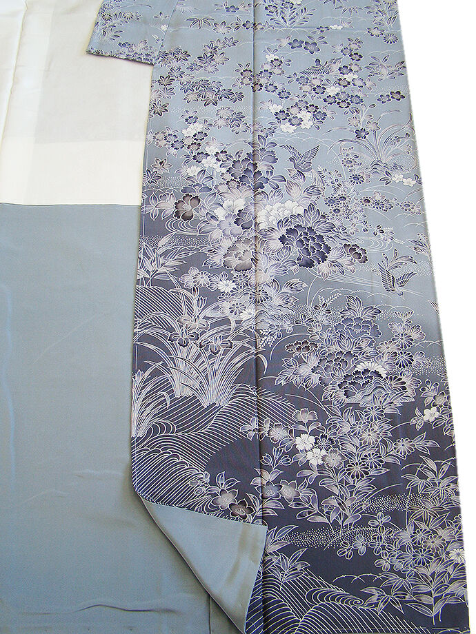 | 商品説明 | こちらのお品は「袷」ですので10月から5月までお召頂ければと思います。 とてもしなやかで柔らかな手触りの着心地良い重めの上質な極上ちりめん地の生地、 灰青色地に裾にかけて鈍色ぼかしに花草や鳥、流水柄等の染柄、 気品に満ち溢れた彩りが正統派のお着物として一枚は欲しい逸品の素敵なお着物です。 八掛は青磁鼠色(正絹)、幅広い年代の方にお召頂けます。 |