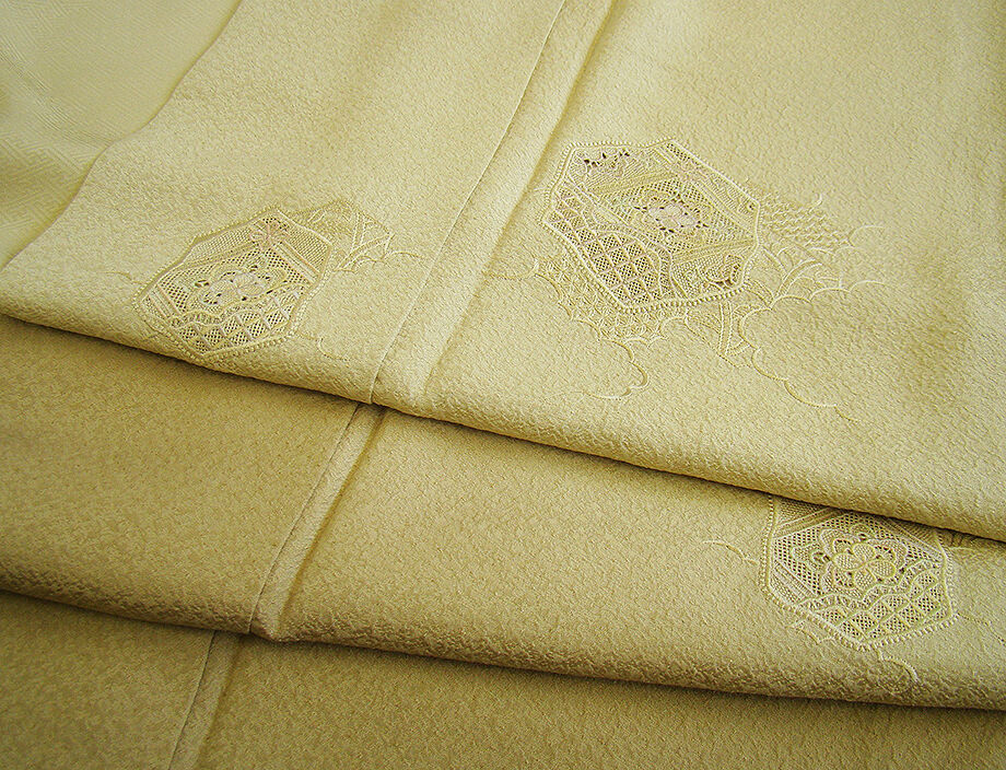 | ちょっと一言 | 優美な着物スタイリングを完成させるぽってりとしたちりめん地に刺繍柄の上品な付下げです。 帯や小物次第で様々な表情をお愉しみ頂けることでしょう。 |