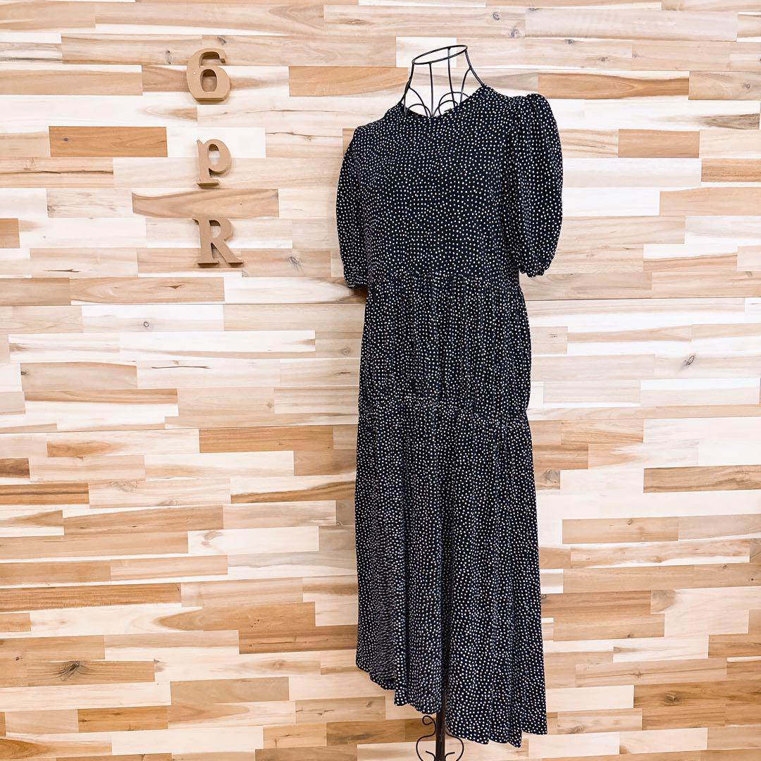 さらりとした柔らかい風合いのコットン素材が心地よく、通気性の良さで快適に過ごせるブラックベース。全体に散りばめた小さなホワイトドット(水玉模様)がリズム感を生み、ふんわりとした袖とウエストのギャザーがやさしい立体感を演出。リラックス感と愛らしさをバランスよく引き出してくれるZARAのワンピースです。※LGスタイラーにて除菌リフレッシュ・スチームクリーニング済みです。