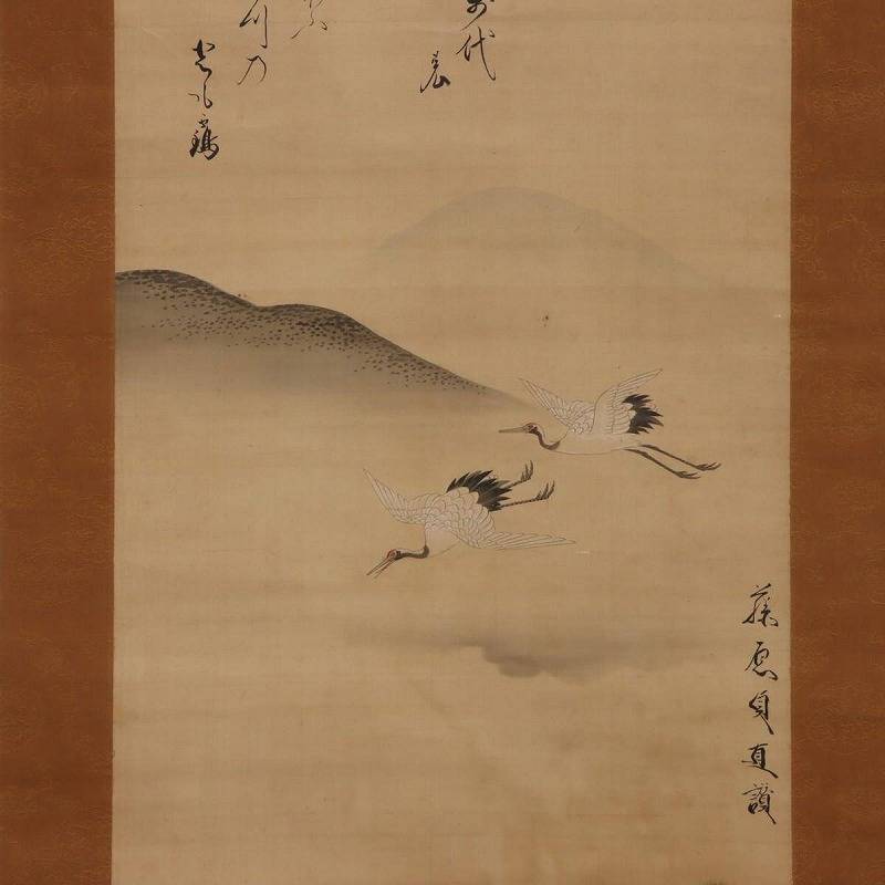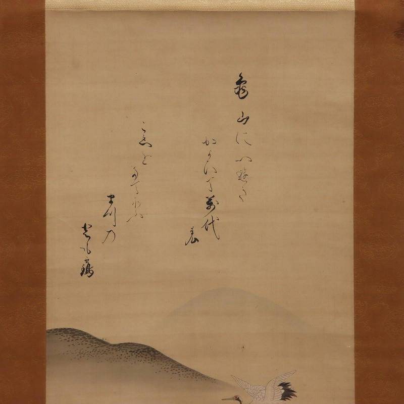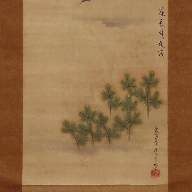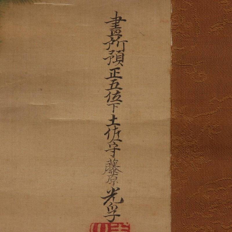 【真作】土佐光孚・富小路貞直 掛軸 絹本 肉筆 彩色・墨「鶴飛松之図」 双幅 落款 印有 合箱 gh09-9989[TOM] | |