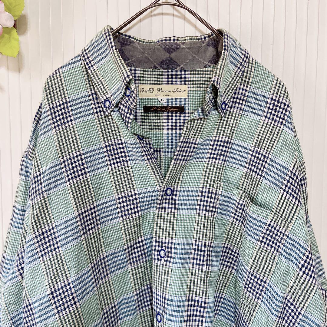 68-21 -大特価ー 日本製★京都 美品 【QIQ ブラウンセレクト】 コットン シャツ (L) チェック QIQ Brown Select メンズ 長袖 高品質 收藏