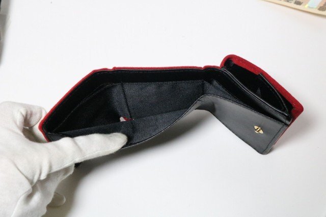 【Maturi マトゥーリ】 アルカンターラ ピスタシリーズ 三つ折り ミニ財布 ギフト MR-103 RD/BLAKC 定価38500円 收藏