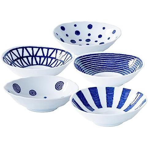 07.小鉢セット 波佐見焼 軽量 セラミック 小鉢 ボウル 皿 5枚セット 径約16cm 藍玉柄 電子レンジ可 食洗機可 日本製 19865 收藏