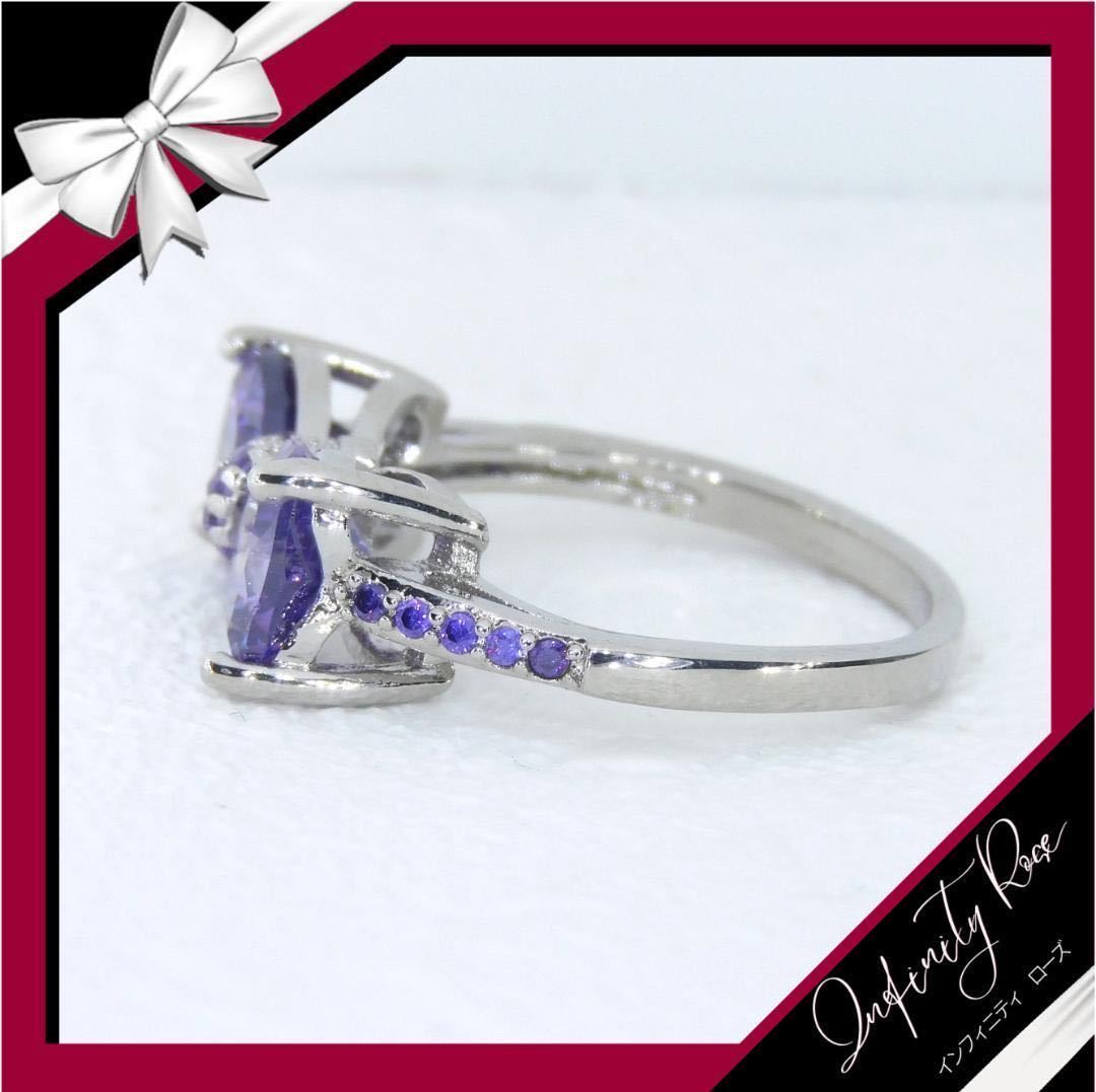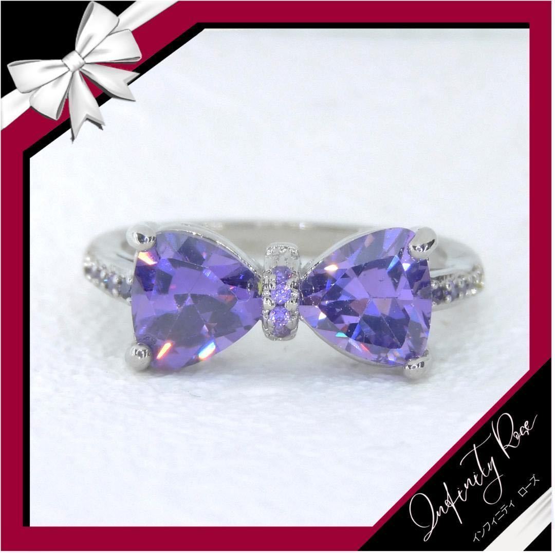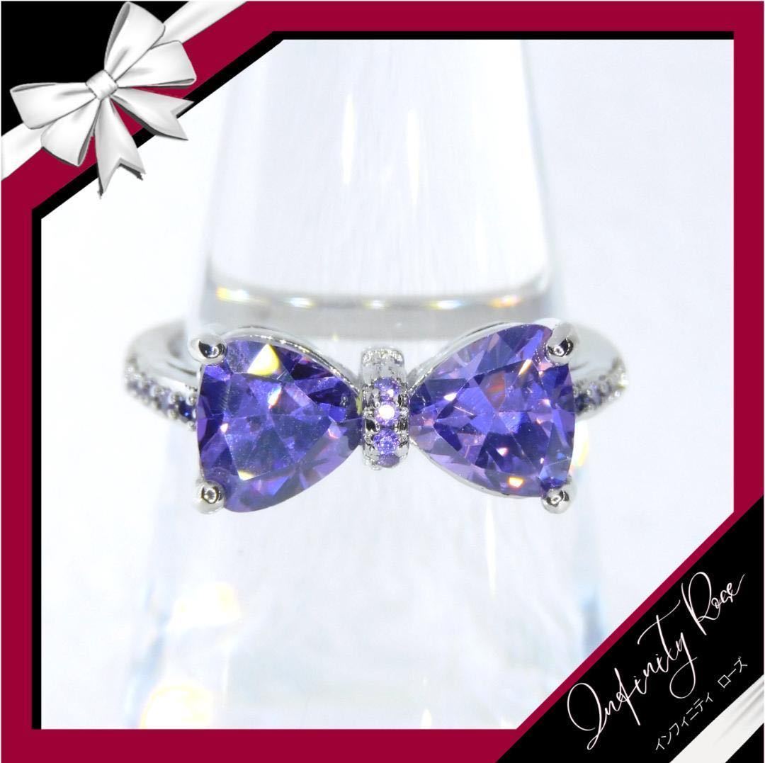 (R067S)20号 パープル大人可愛い立体リボンリング 高価爪留め指輪 收藏