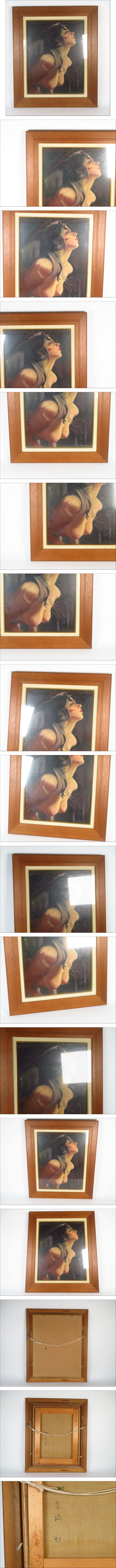 【模写】裸婦画 谷崎勉 作家 在銘 油彩 油絵 額装 画家 美人画 人物画 骨董品 古美術品 東方美術協会会員 横46cm×縦55cm【930】 | ||