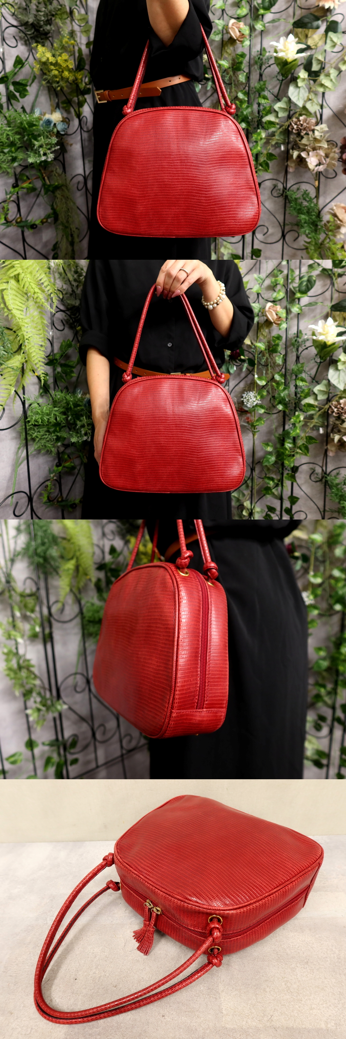 ●超美品●BOTTEGA VENETA ボッテガ ヴェネタ●リザード 型押し レザー 本革●ハンド バッグ●赤●ゴールド金具●ヴィンテージ●Js61029 收藏