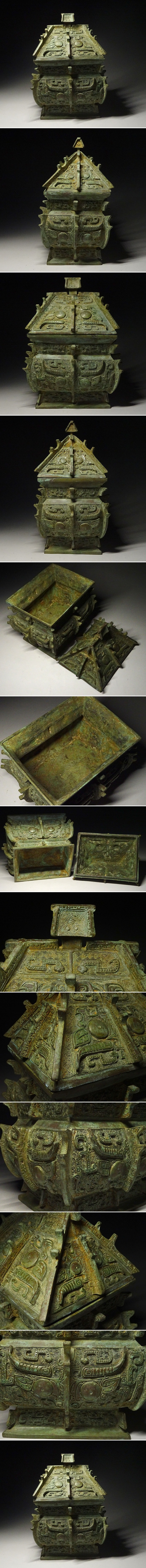 緑屋z■ 中国古玩 銅製 青銅器 方イ 蓋壺 饕餮紋 唐物 時代物 i9/7-7261/5-4#80 收藏