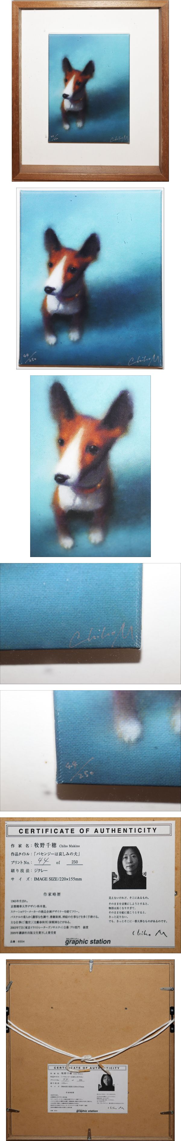 真作 牧野千穂 ジクレー【バセンジーは哀しみの犬】44/250 額装 Chiho MakinoE952 收藏