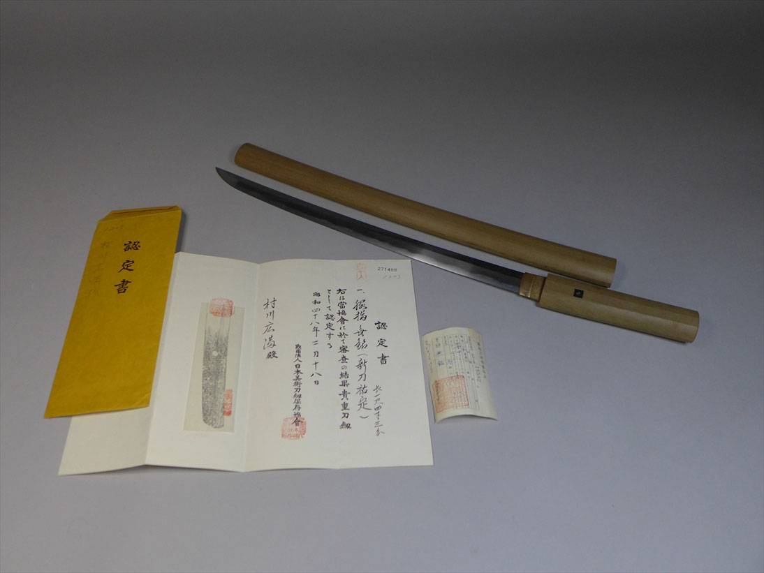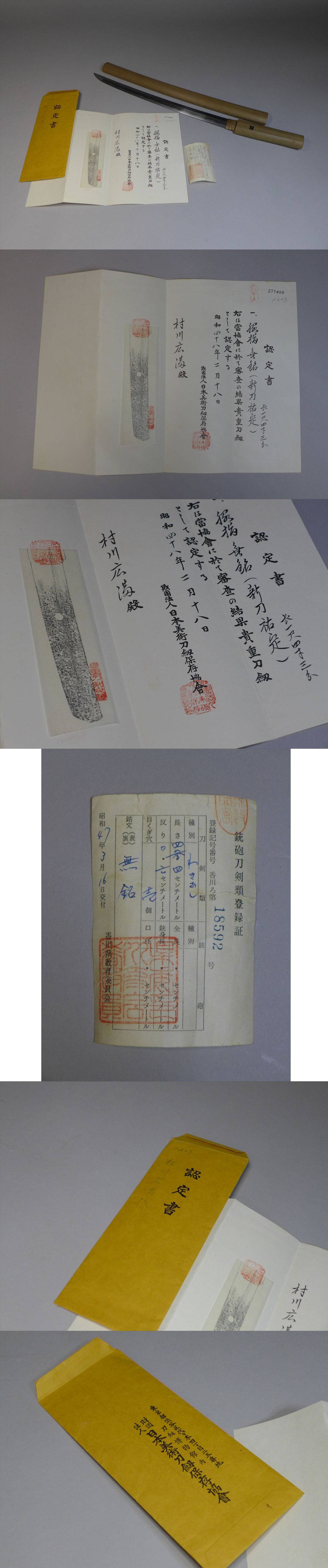 刀剣『脇差 無銘(新刀祐定)貴重刀剣認定書付 43・4cm』検 /日本刀甲冑鎧兜太刀目貫縁頭鍔脇刀剣 收藏