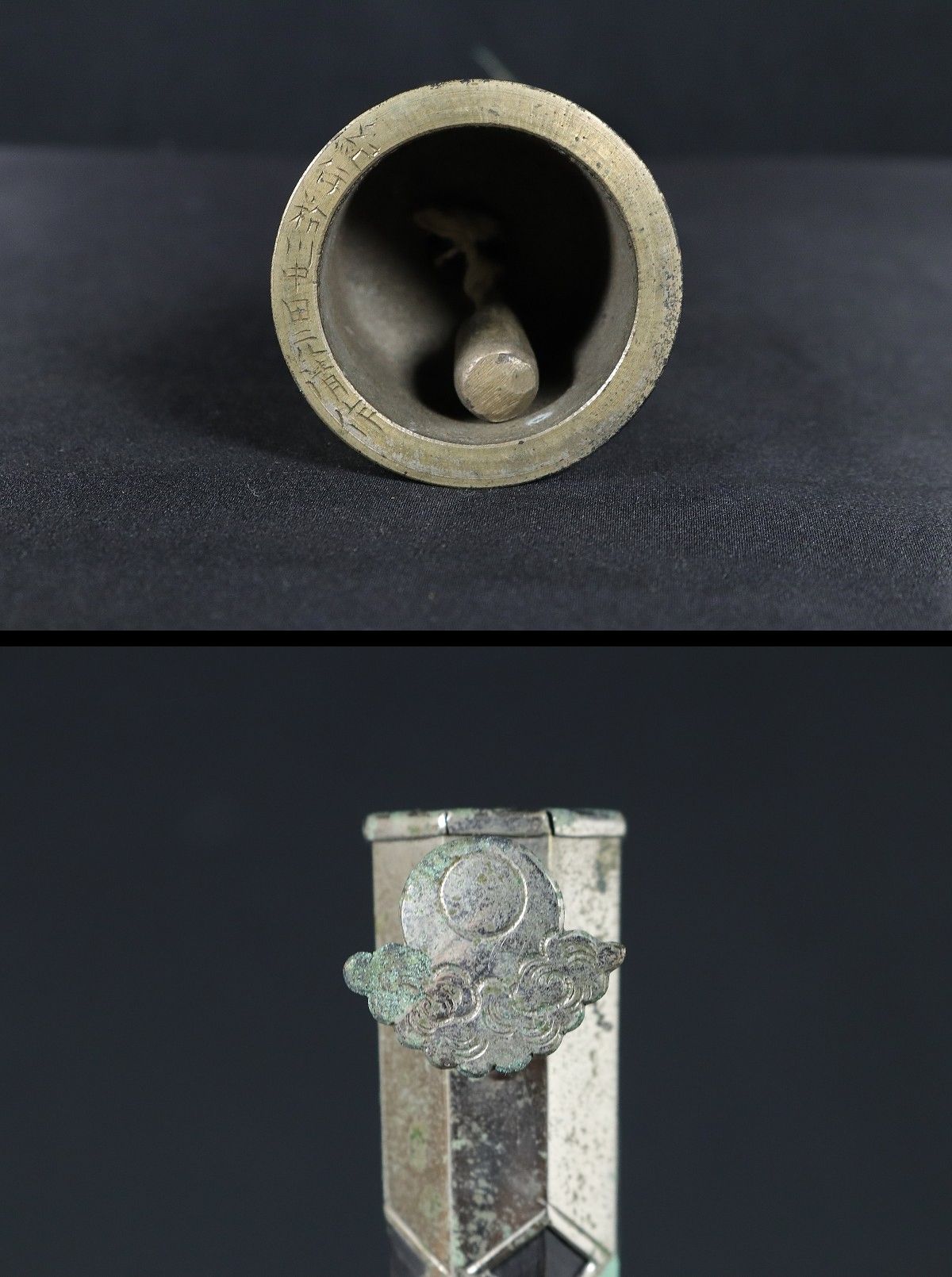 11113■ 御詠歌用 五鈷鈴 「紀伊粉川中田元清」銘有 仏教 仏具 法具 收藏