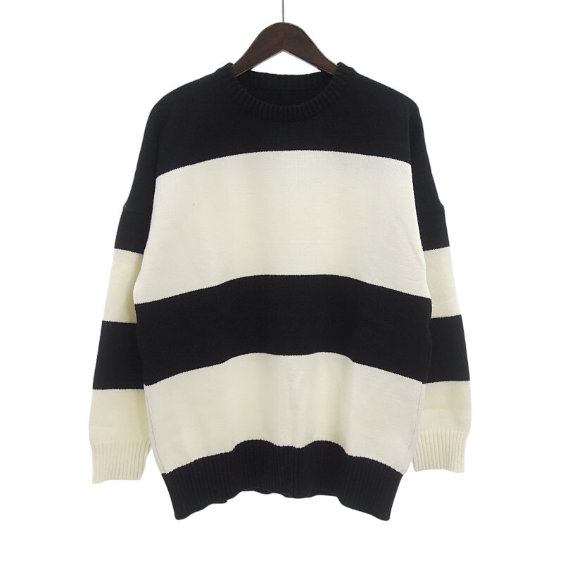 【特別価格】RESOUND CLOTHING drop loose PILE sweater ボーダー セーター ニット ブラック×ホワイト サイズ メンズ1~2 收藏