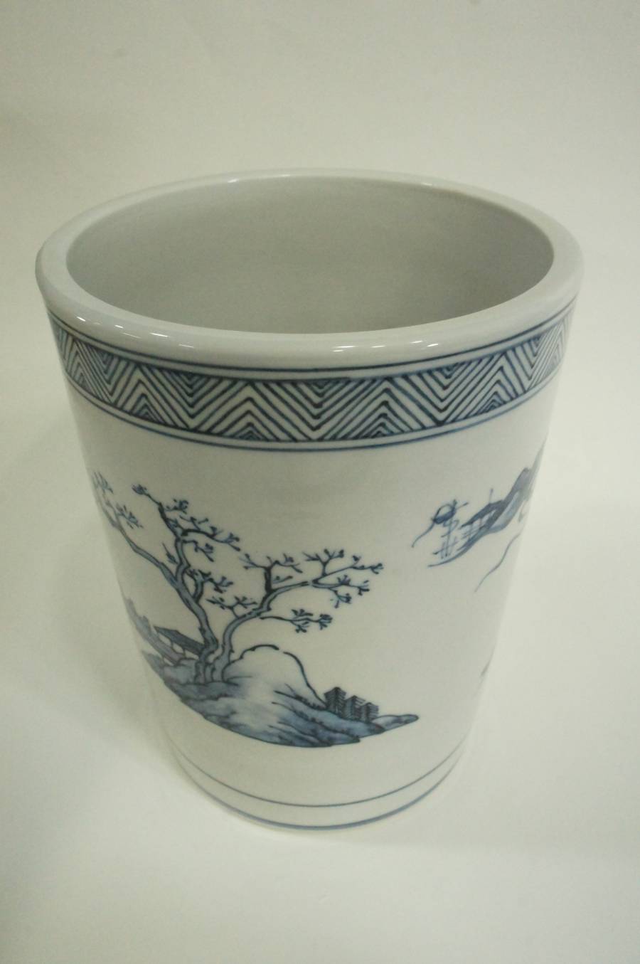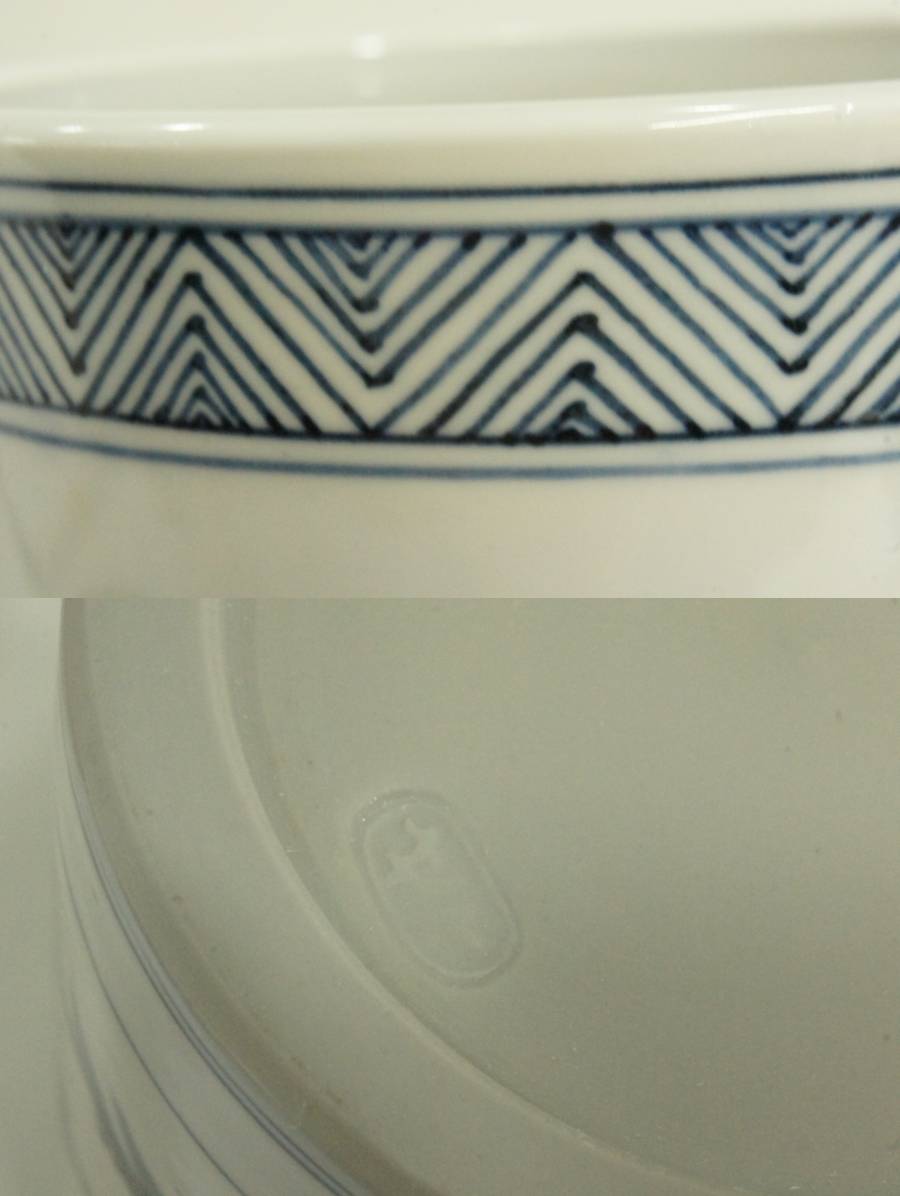 ●表千家流堀内家十二世 兼中斎 堀内宗心 宗完 書付 染付山水絵一重口細水指/膳所焼 淡海膳所陽炎園 共箱 塗蓋 未使用に近い 茶道具