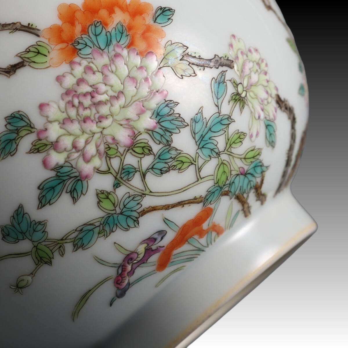 ◆御泓軒◆『清時代 陶磁器 粉彩花鳥紋蒜頭瓶 清雍正年製款・箱付』極細工・古賞物・中国古玩・中国古美術