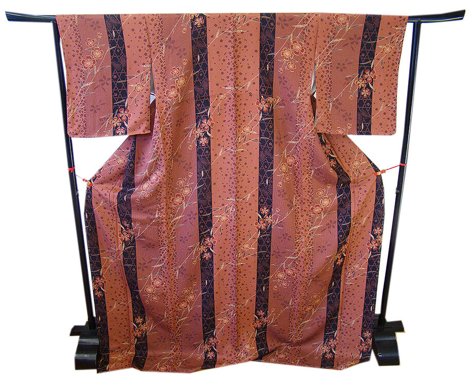 | ちょっと一言 | 暮らしのお洒落着に重宝頂ける滑らかなちりめん地のロング寸の素敵な小紋です。 帯や小物等の組み合わせにより無数のコーディネートをお愉しみ頂けます。 |