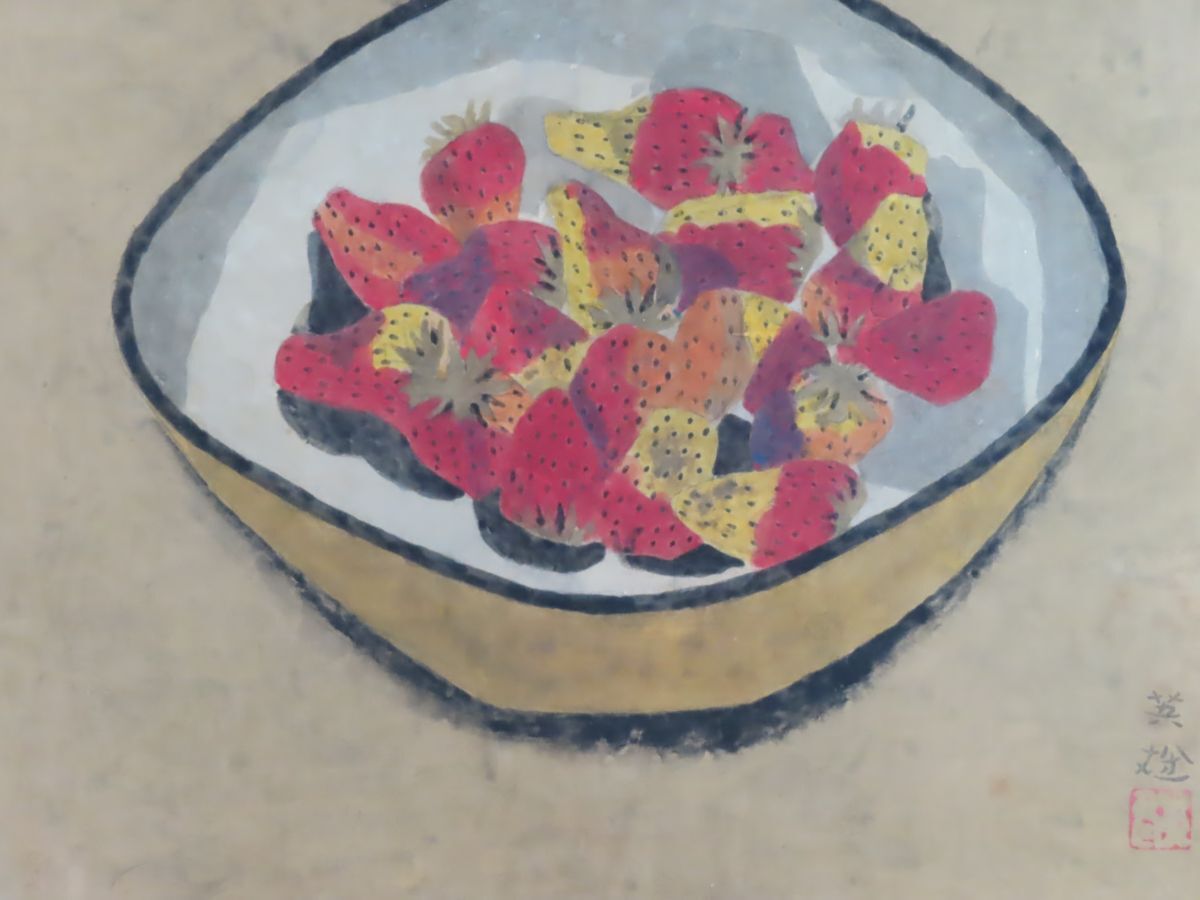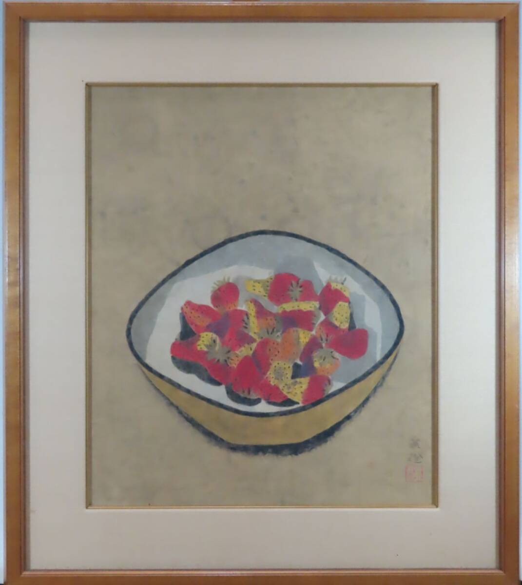穂高「真作」日展実力人気作家 西山英雄 「 苺 」 日本画 10号 共シール 收藏
