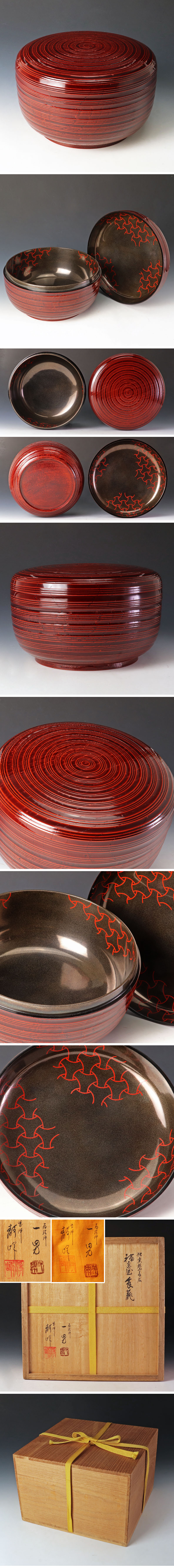 | 【古美味】蒔絵師 坂一男 塗師 静峰(大家義男) 独楽繋蒔絵輪島塗喰籠 茶道具 保証品 |