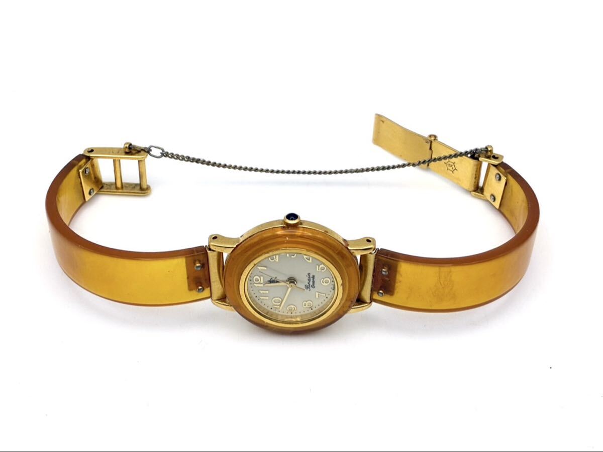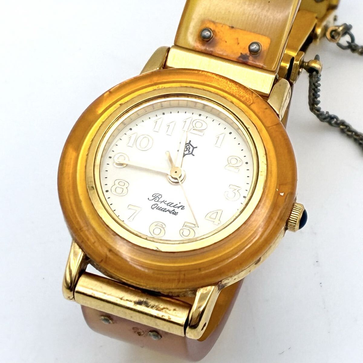 【動作良好】 BRAIN ブレイン 本べっ甲 鼈甲 アイボリー文字盤 日本製 ラウンドケース型 レディース腕時計 ゴールド 金 クォーツ 希少 收藏
