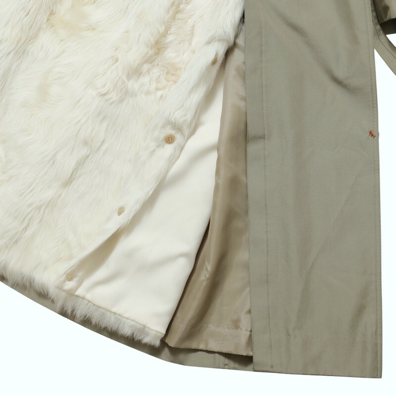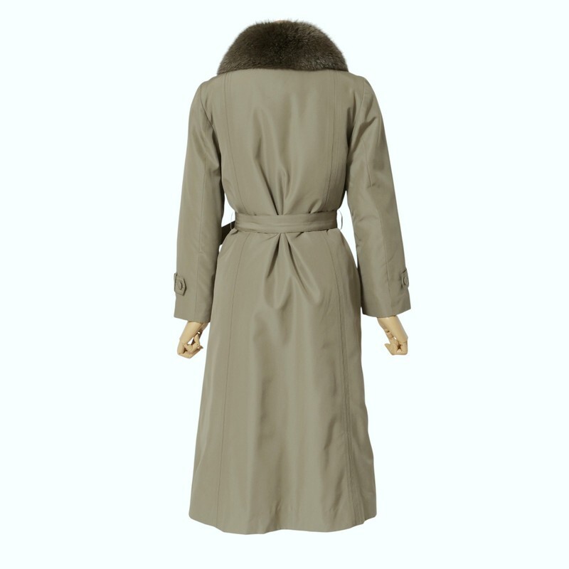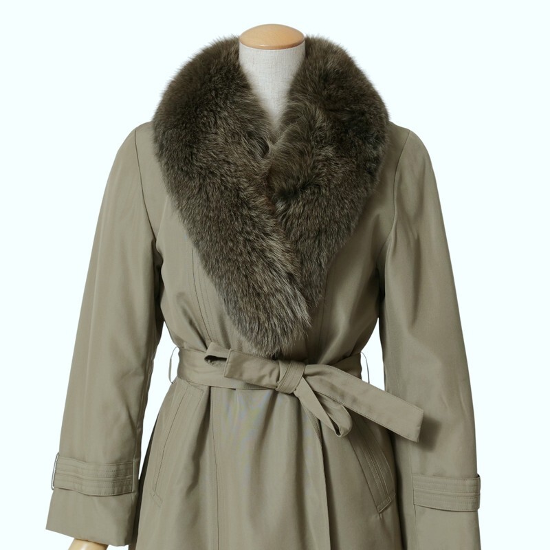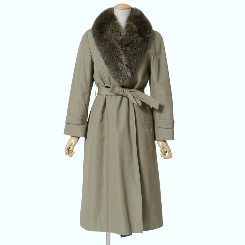 | GS4685□SILK BOGARD 総シルク フォックスファー衿 ラムファーライナー ベルト着脱可 ロングコート レディース サイズ7 カーキ系 | |||