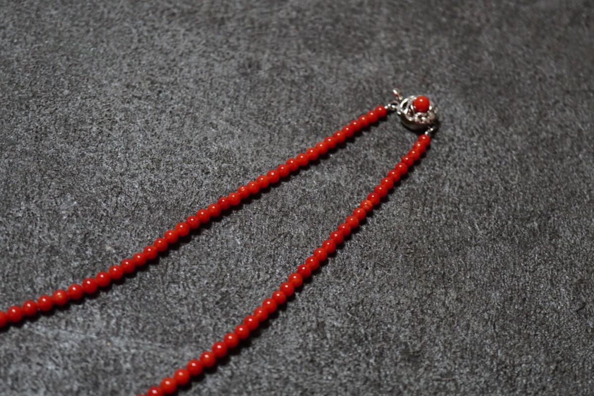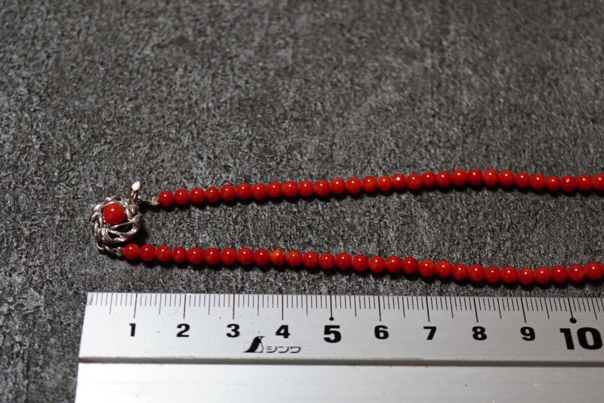 x4 天然珊瑚 朱色珊瑚 丸玉 ネックレス ヴィンテージ アクセサリー SILVER 首飾り ペンダント コーラル サンゴ 冠婚葬祭 ソーティング付き 收藏