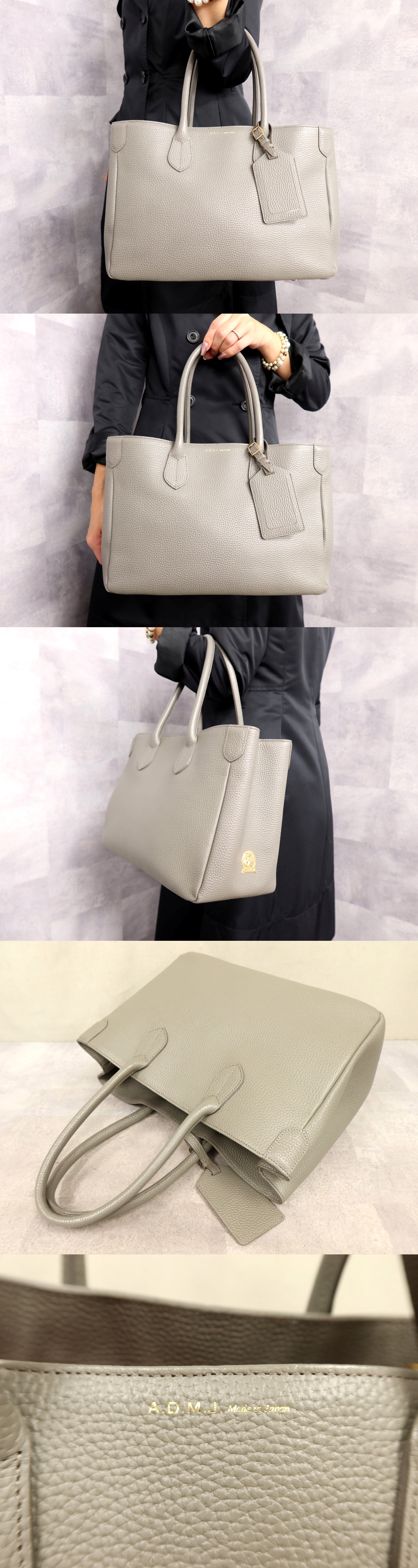 ●超美品●A.D.M.J エーディーエムジェイ●カーフ レザー 本革●トート バッグ●グレー●ゴールド金具●腕掛け●A4 収納 かばん●Js61894 收藏