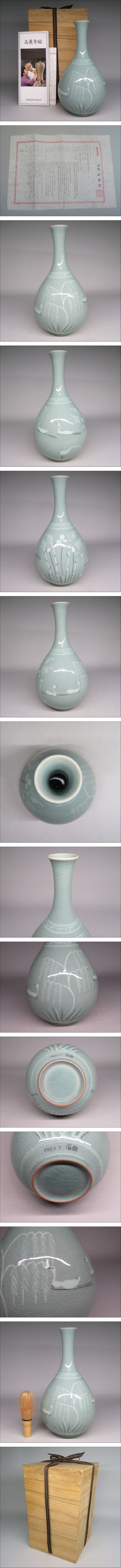 | 柳海剛 韓国人間文化財(柳根瀅) 高麗青磁象嵌蒲柳水禽文瓶 韓国 人間国宝 柳海剛 ◆高麗 海剛 | |||||||