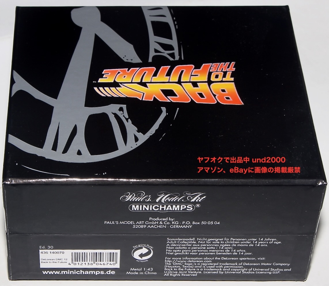Minichamps、映画「バック・トゥ・ザ・フューチャー」 Back To The Future Part 1、Delorean DMC 12。送電用アンテナが付いたPart 1仕様。5003台限定、シリアルナンバー付。日本正規未発売。1990年代の製品。未使用、未展示品。長期保管品。本体、箱共に良好。量産品の製品のクオリティーについては、ノークレームでお願いいたします。お支払いはヤフーかんたん決済のみ。東京発、ゆうパック持込60サイズ(東京700円 - 沖縄1330円)、または定形外郵便(追跡番号、保険無し)920円の発送となります。(上記の送料はこの出品物のみの料金となります。複数落札、同梱包発送の場合、重さ、サイズが変わりますので送料が変わります。)3日以内のご連絡、かんたん決済の支払期限内(通常5日、支払方法により異なります)のお支払い厳守でお願いします。入札される前に「自己紹介」もあわせてお読みください。 検索用 PMA Time Machine タイムマシーン