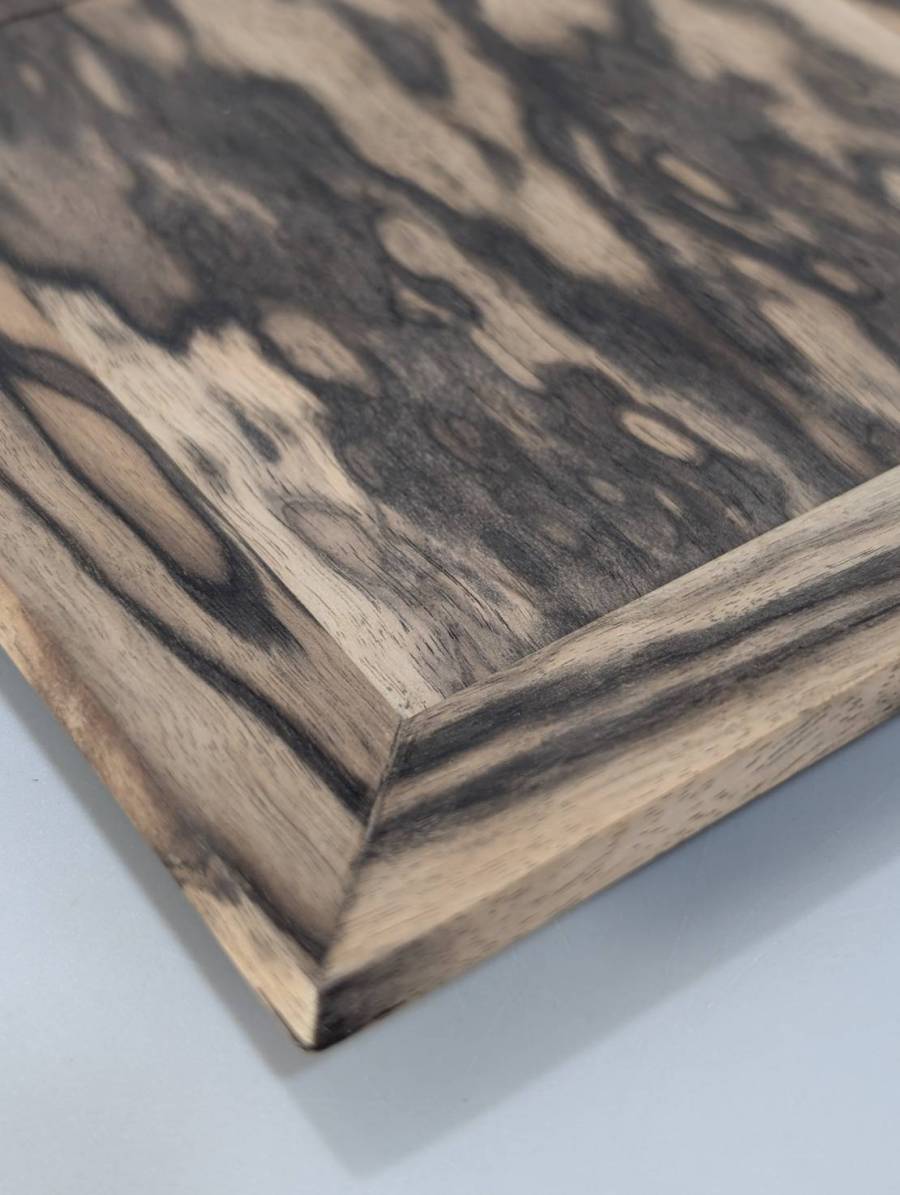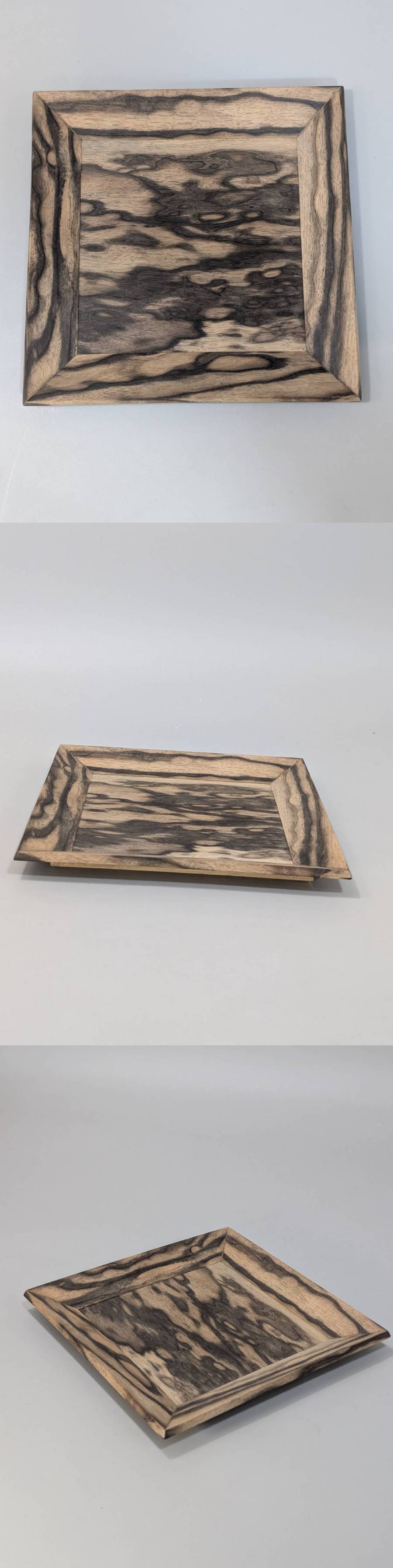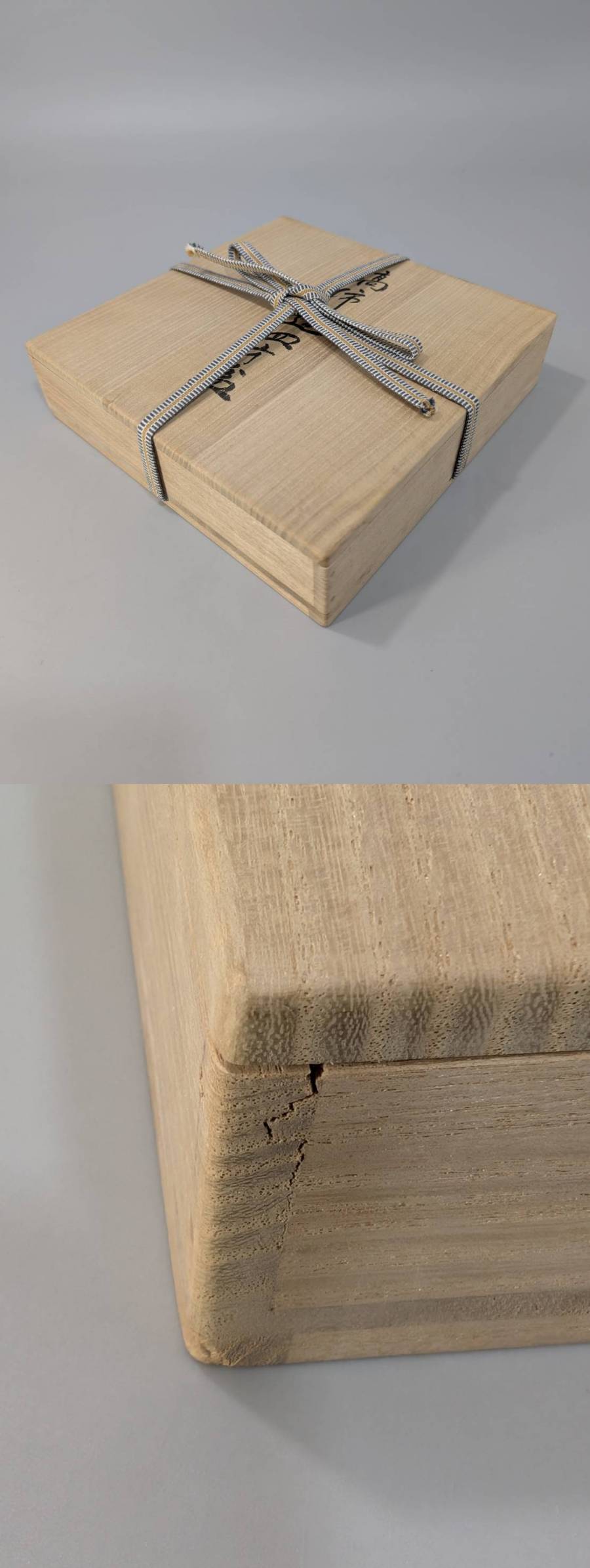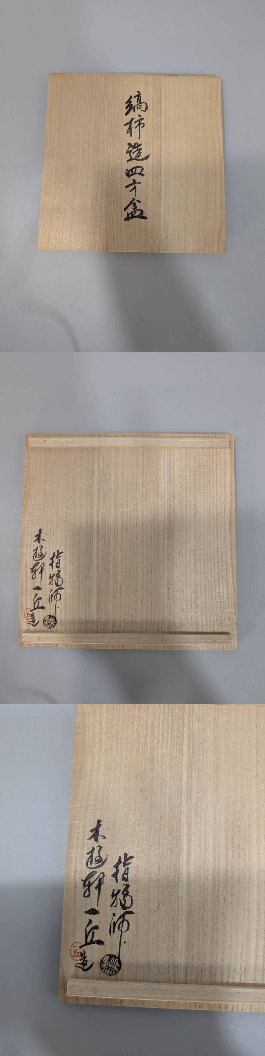 ●萩井一丘 縞柿造四方盆 共箱 共たとう