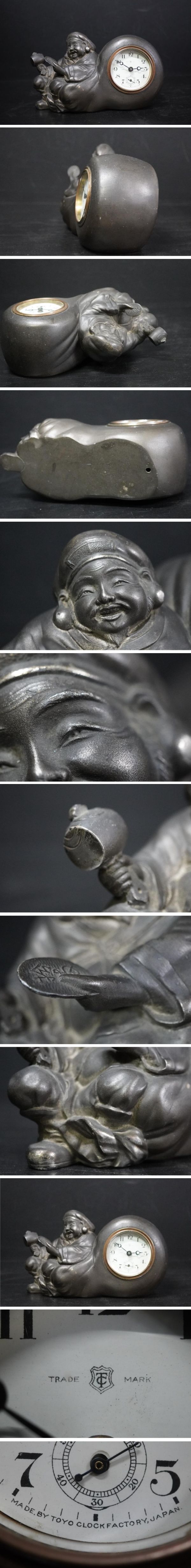 ご覧いただきありがとうございます。 昭和レトロ 東京時計 銅製 大黒天 手巻き 置時計 動作品です。 擦れキズ、経年のシミ、汚れ等ありますが、総じて状態は良好です。