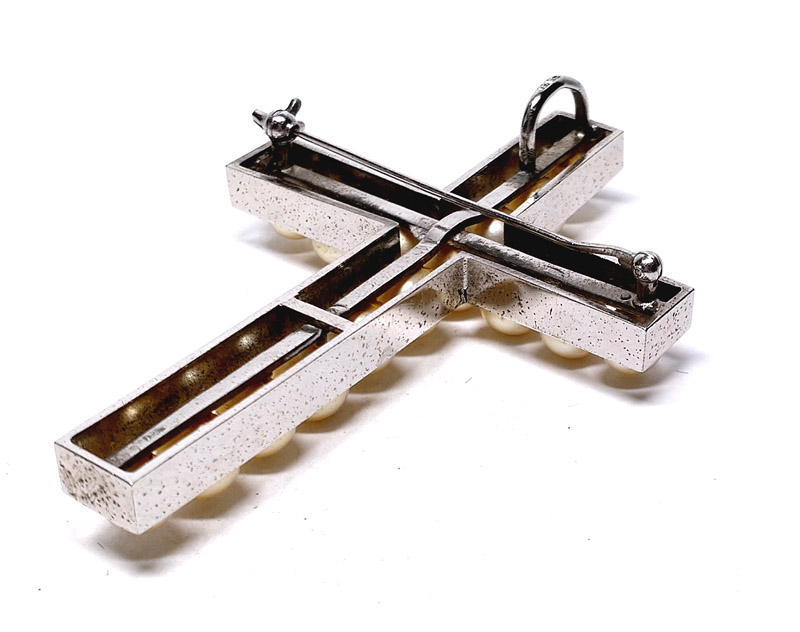 【侍】SILVER シルバー フェイクパール 十字架 BIGクロス ブローチ兼ペンダントトップ 三越ケース付 20+931 收藏