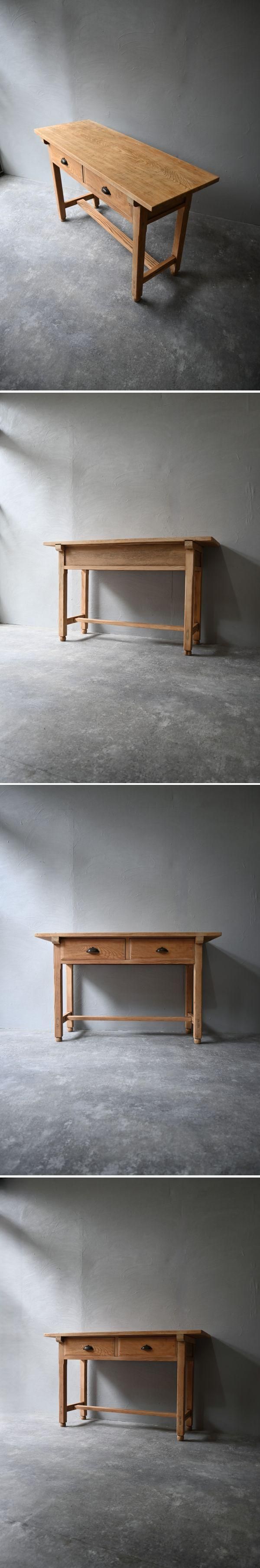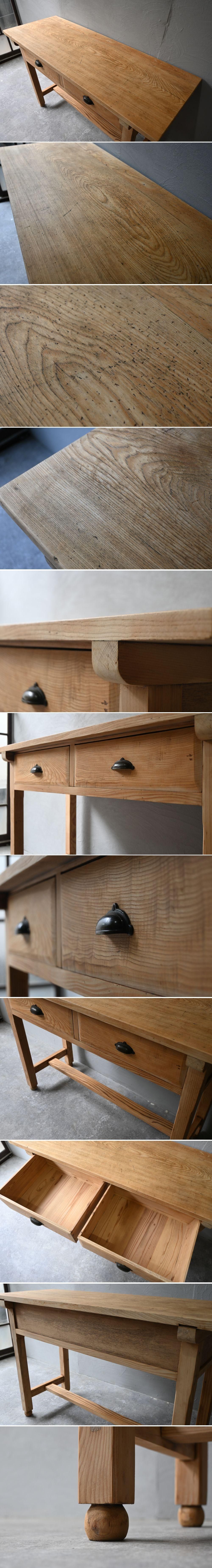 古い楢材の引出付き長テーブル アンティークアトリエ飾り台陳列台作業台店舗什器 收藏