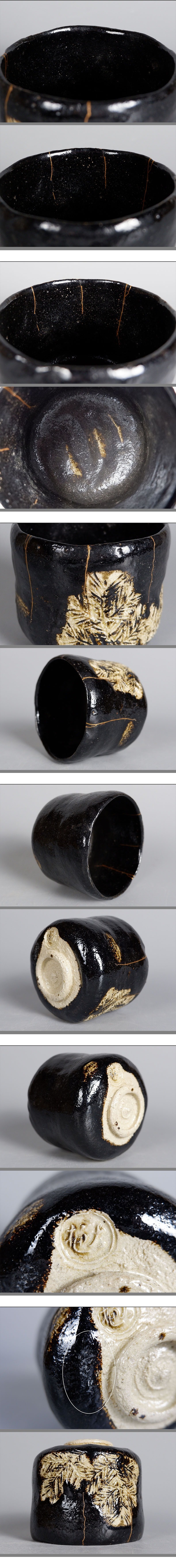 【MKA】名工9代大樋長左衛門 松ノ絵黒筒茶碗 共箱 これからの季節に 加賀 石川 茶道具 真作保証 收藏