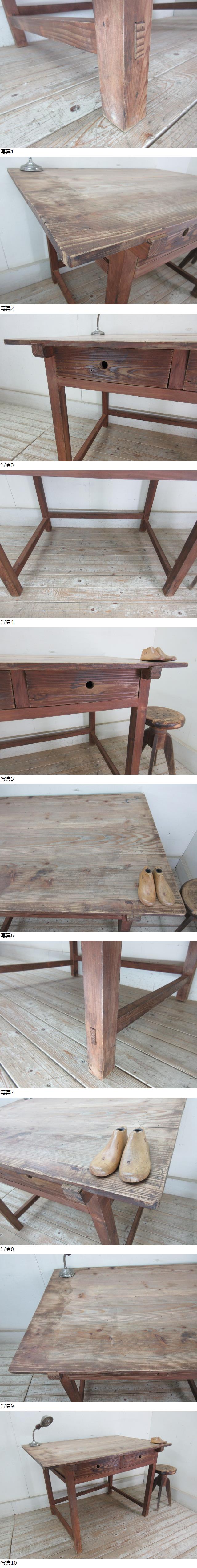 古い木味の2杯引き出し平机②K821 アンティーク家具片袖机両袖机学習机デスク作業台カウンターテーブル店舗什器カフェ什器無垢材古家具 收藏
