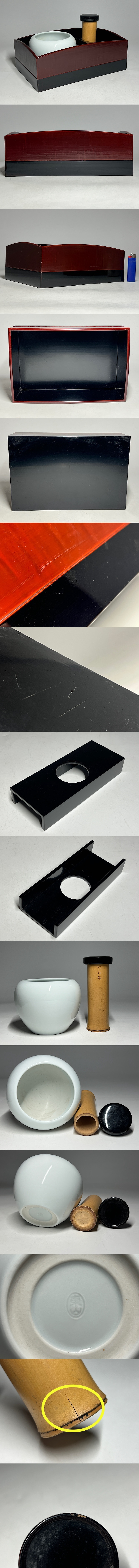 木製 漆塗 煙草盆 東山作 火入付 ◆商品詳細 寸法(約):14.6x25.9x16.8(高×幅×奥行cm) ※寸法に若干の誤差が生じる場合もございます。 汚れ、スレ、竹筒にヒビ、蓋に少し漆の剥がれがありますので、 ご承知の上入札お願いします。 状態等画像にてご確認の上ご入札よろしくお願いいたします。 ◆発送先等のご連絡とお支払いについて ※発送先等のご連絡 落札時から48時間以内にお願い致します。 ※お支払 かんたん決済の期限内にお願い致します。 複数点落札時にまとめて取引の場合(72時間内)に、 まとめて取引の取引手順(落札者方の操作)を参考にお願い致します。 梱包したサイズを測って、地方によって送料を決めますので、よろしくお願いします。 ◆掲載画像について ※画像は現物を撮影しておりますが、照度、遮光、モニターによっては実物と 色目が異なって見えることがありますのでご注意ください。掲載画像では確認 できない傷や汚れがある可能性もございます、あくまで 中古品であるということをご承知の上、御入札をお願い致します。 ◆補償について 商品到着後はすぐに状態の確認をお願い致します。 商品の破損等がございまし たら、箱や梱包材など全てそのままの状態で保存し、お早めにご連絡ください。 (到着日から一週間以上経過、梱包材の廃棄済み等の場合、保証は致しかねます のでご注意ください。) ◆返品について 思っていたイメージと違う、などのお客様主観による返品はお受けできません ので、予めご了承ください。ノークレーム、ノーリターンでお願いします。届 いた商品が商品説明と著しく異なる場合(寸法、キズ記載ミスなど)のみ承り ます。早めにご連絡ください。 ◆注意事項 当方の希望価格と隔たりがある場合は、終了前にやむなく取下げさせて頂く場 合がございます。 ※商品ご落札翌日から4日間以内にご連絡が取れない場合は、入札取消の処置を 取らさせていただく場合がございます。 ※評価の悪い方は取り消す場合がございます。 ※原則として当方の不備以外のキャンセル・返品・返金は受け付けておりません。 以上の点を予めご了承頂いた上で、入札・落札お願い致します。 ◆発送方法 ▼ゆうパック(補償あり/追跡あり) 梱包後のサイズ:~約80cm ※送料全国一律1200円 (但し北海道、沖縄、離島は+500円いただきます。) 発送元は静岡県となります。 ( 商品の組み合わせによっては同梱をお断りさせていただく場合があります。) ※大型商品について 郵便局の規定を超える商品の場合は、佐川急便またはヤマトでの発送となります。 |