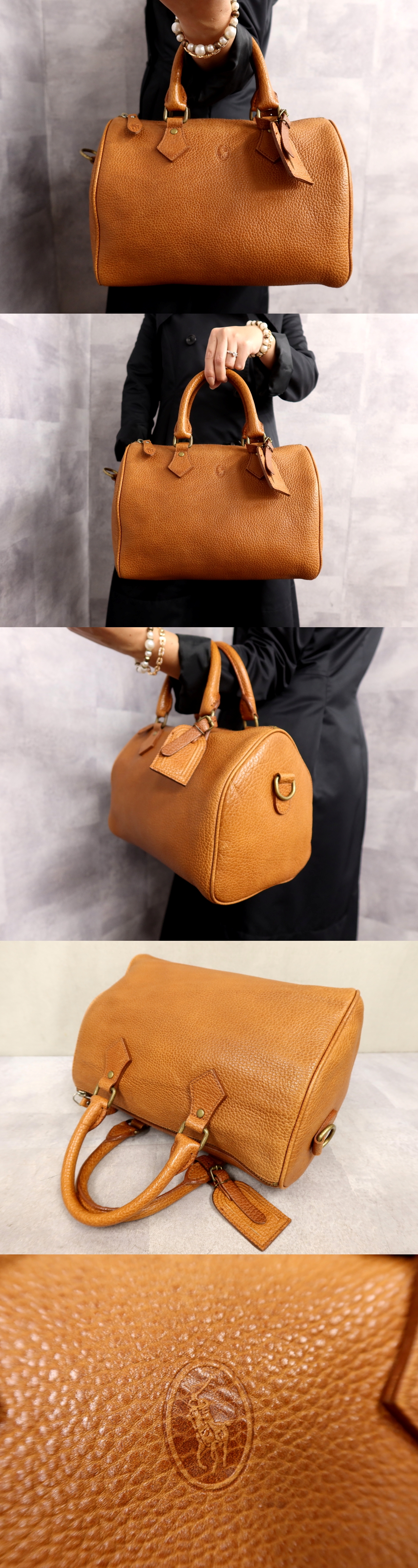 ●超美品●RALPH LAUREN ラルフローレン●ロゴ型押し●カーフ レザー 本革●ボストン バッグ●キャメル●ゴールド金具●腕掛け●Js63313 收藏