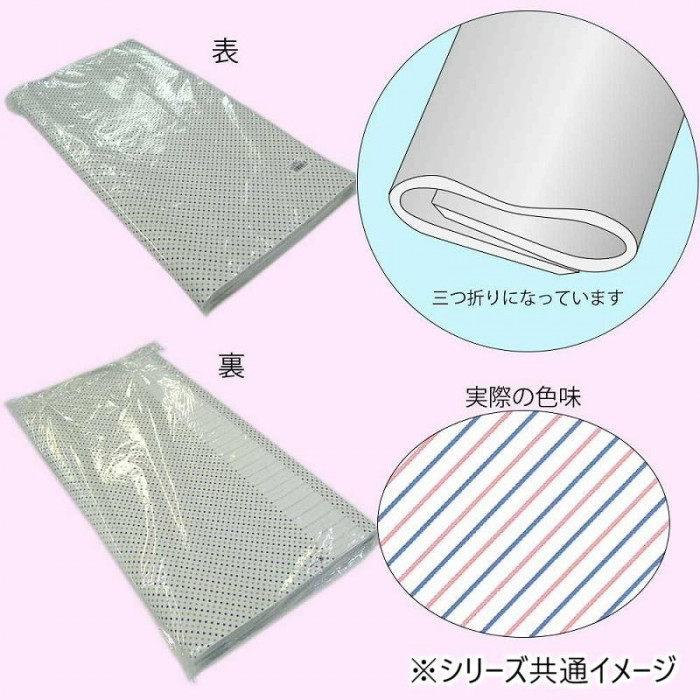 | 白地にピンクとブルーのストライプが入ったさわやかな包装紙です。 ※三つ折りの状態でポリ袋入れの商品になります。あらかじめご了承ください。 |