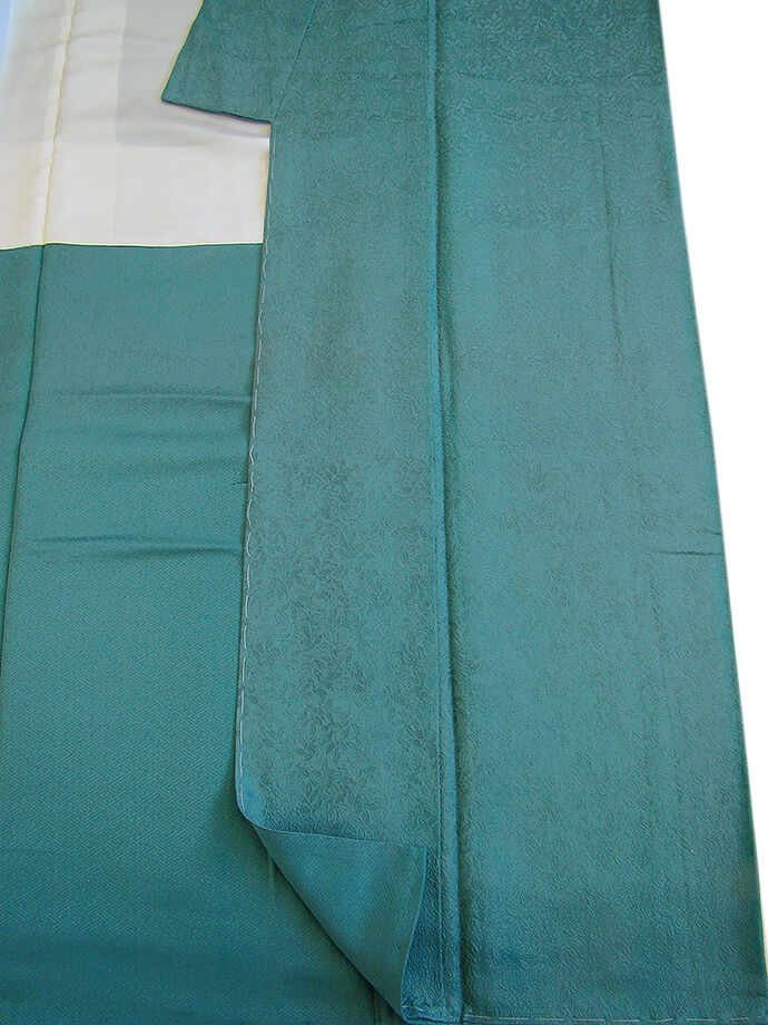 | 商品説明 | こちらのお品は「袷」でございますので、10月~5月までお召頂ければと思います。 とてもしなやかでさらりとした手触りの着心地良い重めの極上ちりめん地の生地、 青緑色地に草木柄の地模様入りの色無地・小紋、 シンプルな色彩の世界に帯や小物次第で様々な自分らしいコーディネートを愉しめ、 幅広いTPOにあわせてお役立て頂けるお茶事にも最適のお品です。 八掛は共色に地模様入り(正絹)、背に刺繍紋1ヶ入っております。 |