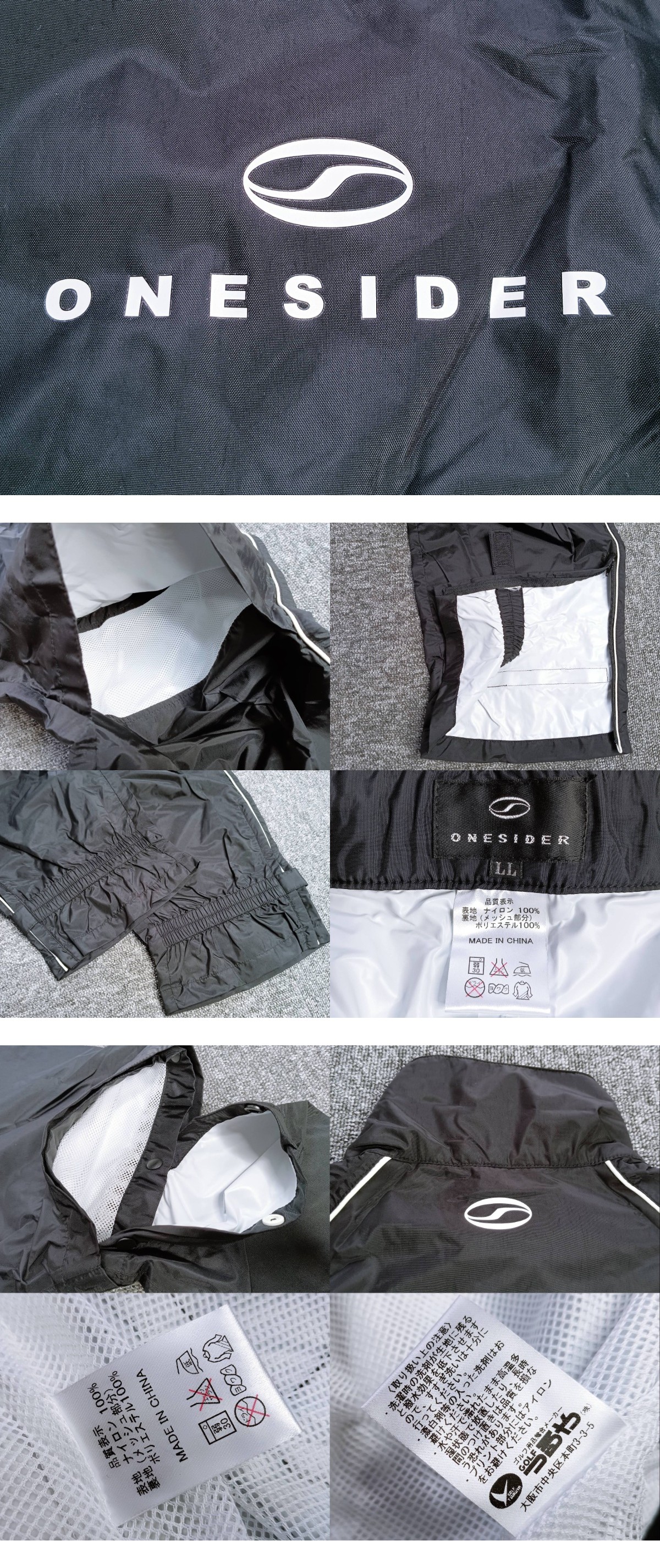 「ONESIDER ワンサイダー 2WAY 長袖&半袖 硬質レインブレーカー上下セット(黒XL-2XL相当)」