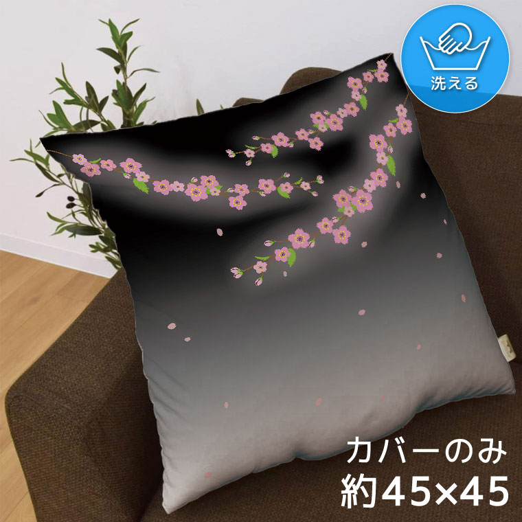 クッションカバー 約45×45cm 洗える 洗い替え リビング ソファ 背当て クッション 転写プリント CSC-A192 夜桜 收藏