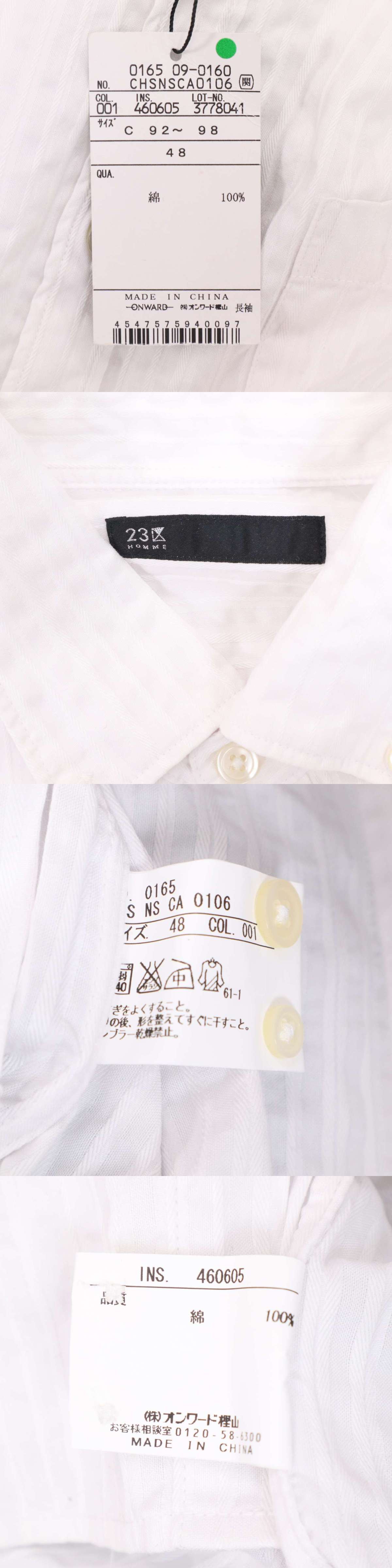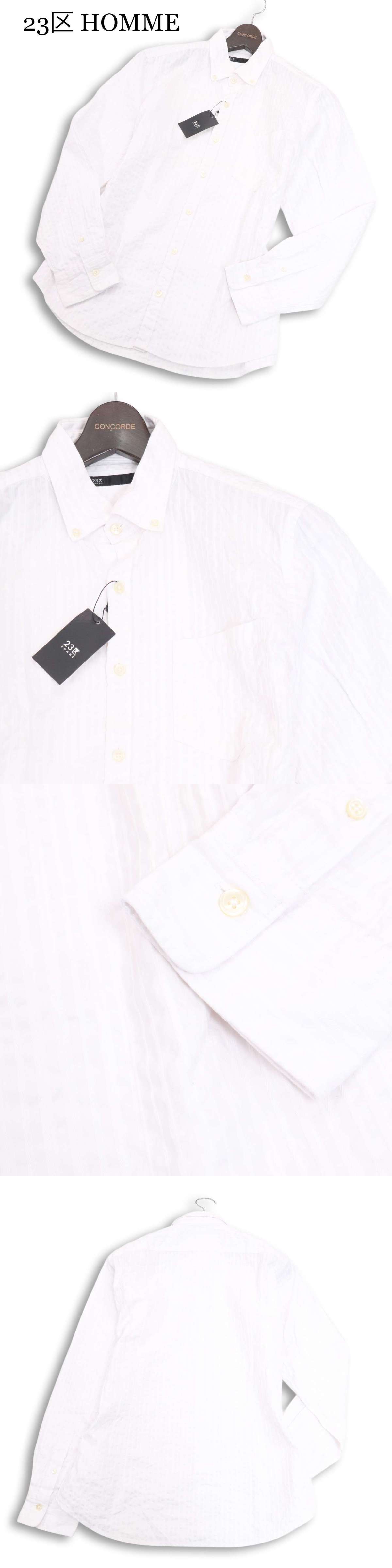 未使用★ 23区 HOMME オム 通年 長袖 シャドー ストライプ ボタンダウン シャツ Sz.48 メンズ 白 收藏