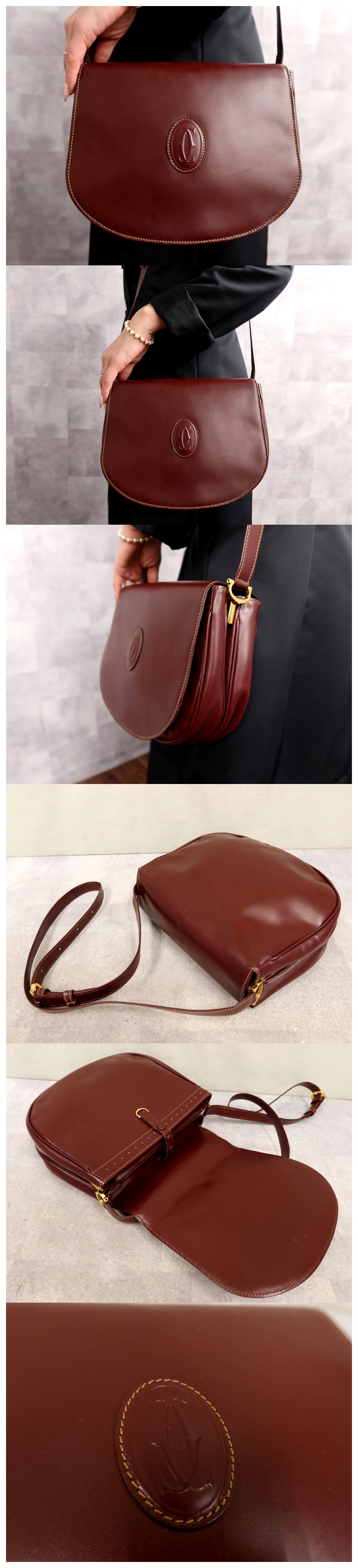●超美品●Cartier カルティエ●マスト●ロゴ型押し●カーフ レザー 本革●ショルダー バッグ●ボルドー●G金具●ヴィンテージ●Js65127 收藏