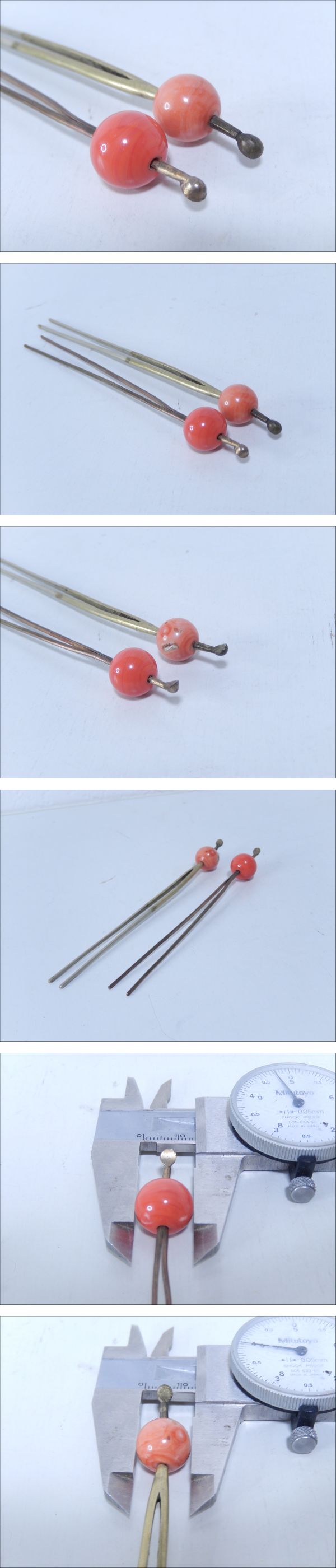 | 【管KA1126】20000円~ 貴重 珊瑚 サンゴ 大玉 14~14.5mm 簪 かんざし 2本セット コーラル 血赤 桃 赤珊瑚 ルース | ||