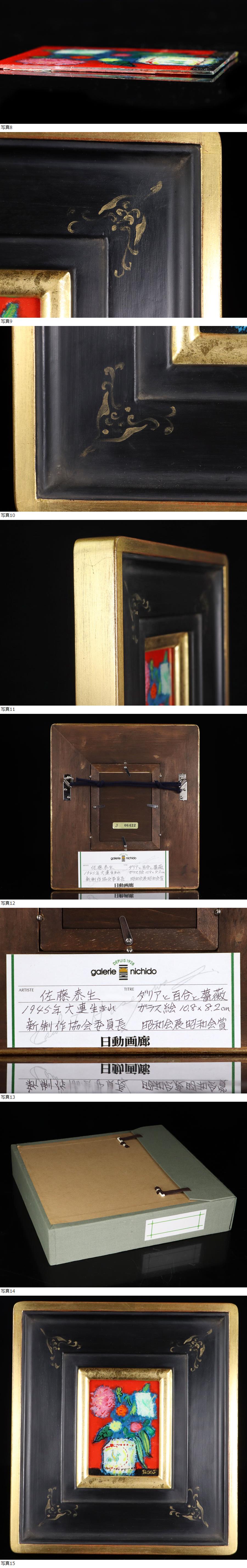 魁◆真作保証 佐藤泰生「ダリアと百合と薔薇」肉筆 油彩 ガラス絵 日動画廊取扱 年鑑作家 タトウ箱 ma J 收藏