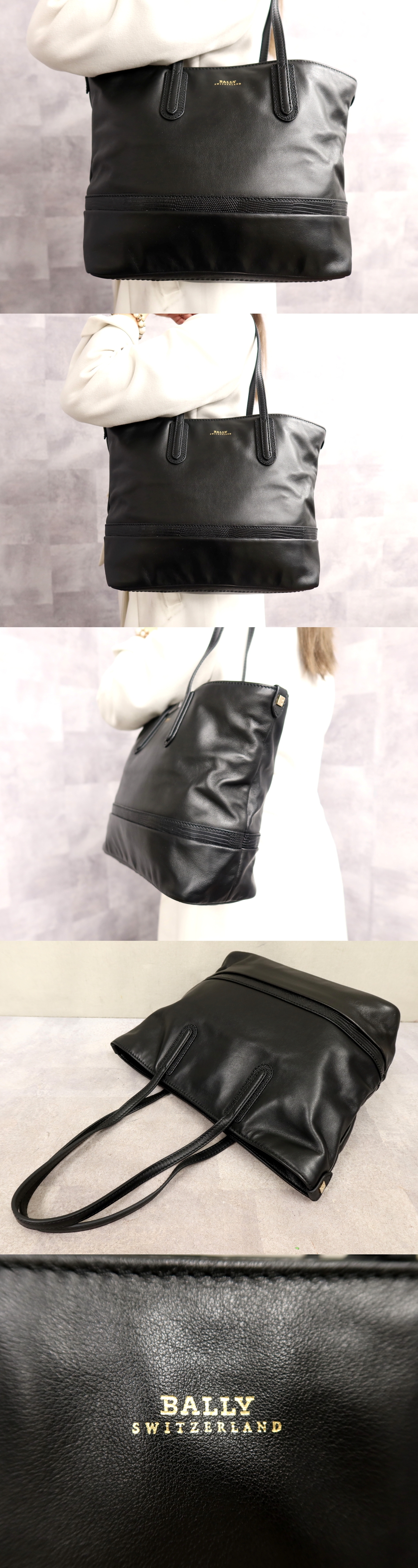 ●超美品●BALLY バリー●リザード 型押し カーフ レザー 本革●トート バッグ●黒●ゴールド金具●肩掛け●A4 書類 収納 かばん●Js66396 收藏