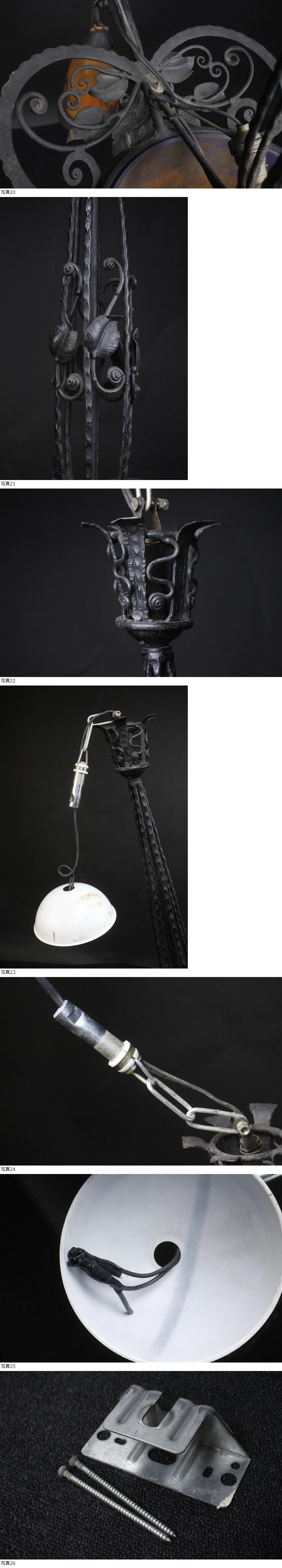 【LIG】20世紀初頭 フランス Muller Freres Luneville ミューラー兄弟 シャンデリア 吊ランプ 錬鉄草花図金具 2603.462 收藏
