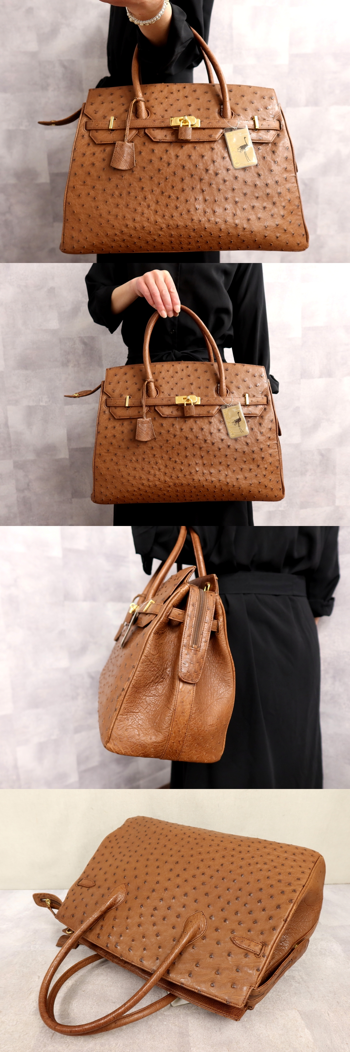 ●超美品●GENUINE●オーストリッチ 本 ダチョウ 革●ハンド バッグ●ブラウン●ゴールド金具●腕掛け●B5 書類 収納 かばん●Js66720 收藏