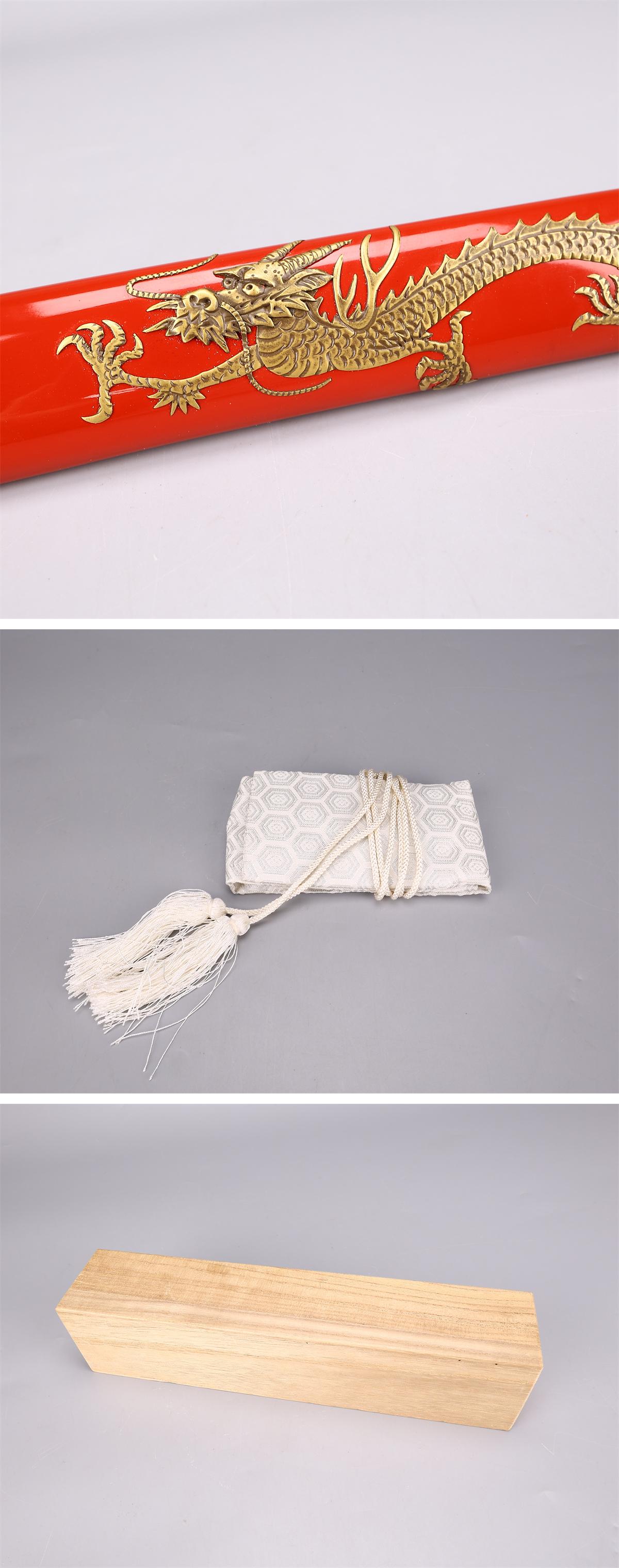 【吉】WB633 模造刀 【銀製】 SILVER950 短刀 全長27㎝ 総重量98g 抜刀重68g 龍紋象嵌赤鞘 箱付 美品G! 收藏