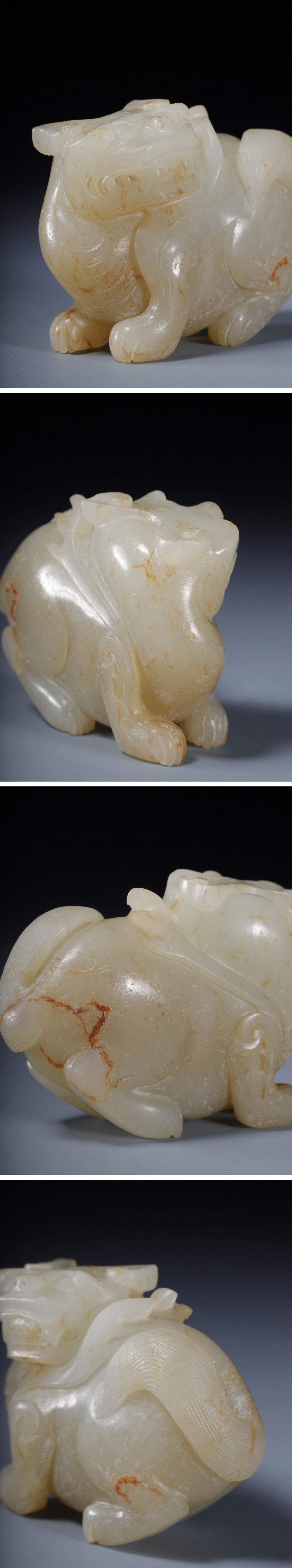 【雲錦】1円から 清時代 和田玉子料 瑞獣文根付 装身具 小物 材質保証 時代物保証 古美術 骨董品8L0-271ZP6 收藏