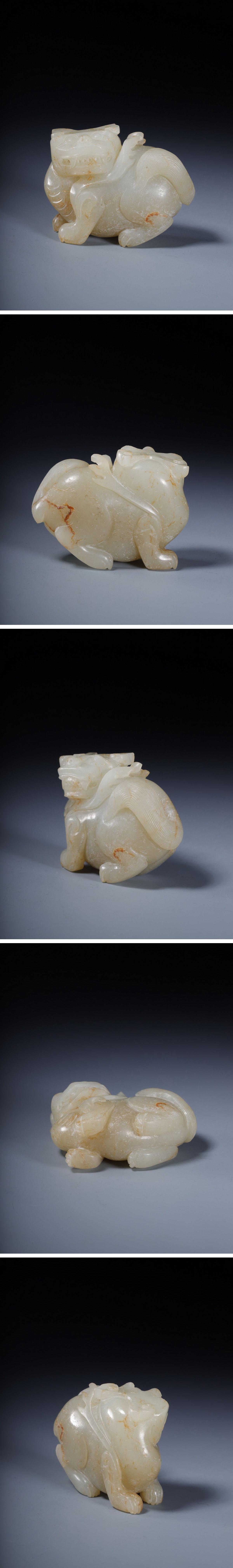 【雲錦】1円から 清時代 和田玉子料 瑞獣文根付 装身具 小物 材質保証 時代物保証 古美術 骨董品8L0-271ZP6