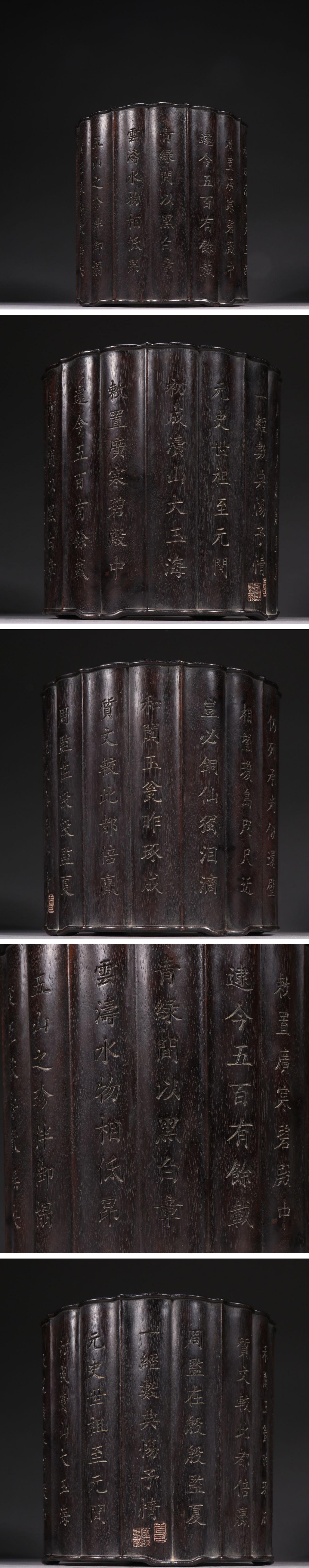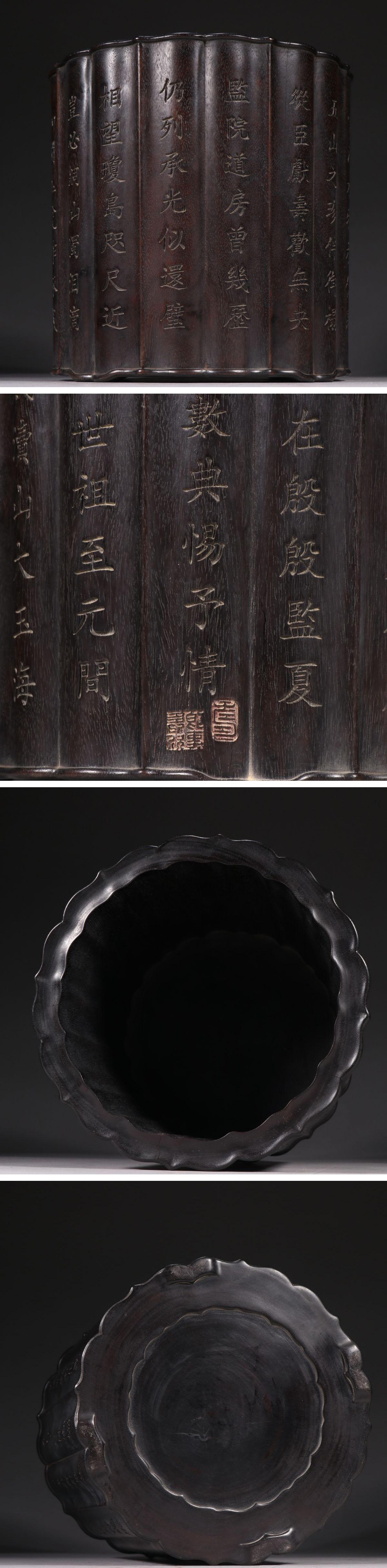 【雲錦】1円から 清時代 紫檀木 手彫り漢詩文筆入 古書道具 時代物保証 材質保証 古美術 骨董品8L0-279ZM6